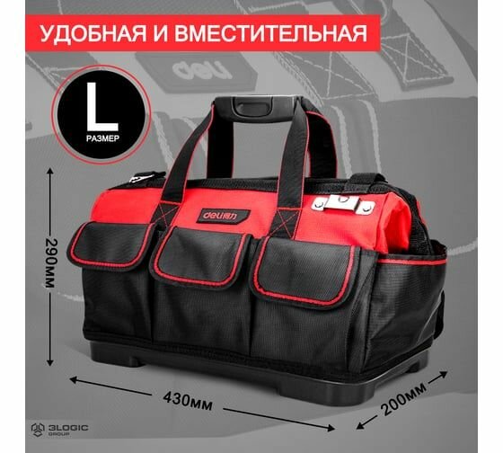 СохранитьСумка для инструментов с жестким пластиковым дном Deli DL430318, 430 x 200 x 290мм. интересное: