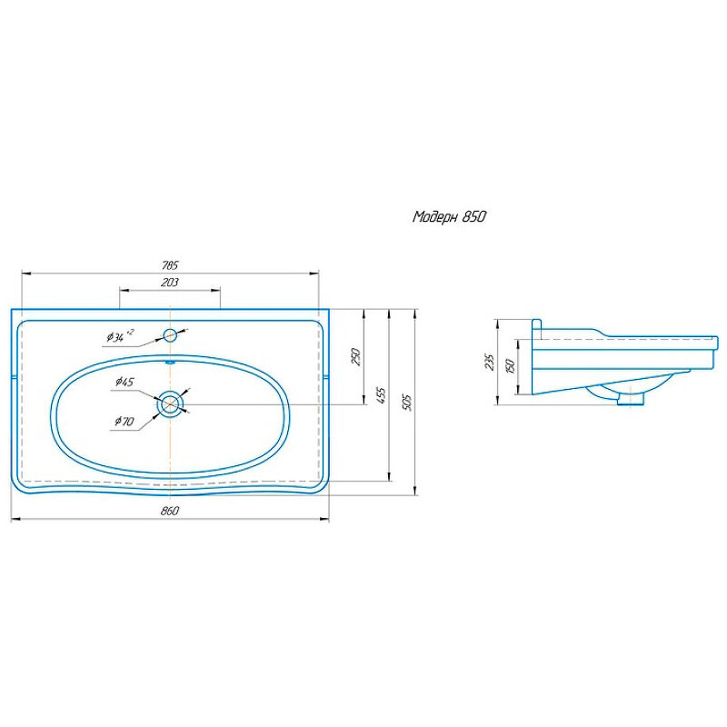 | Отверстие под перелив | есть |
