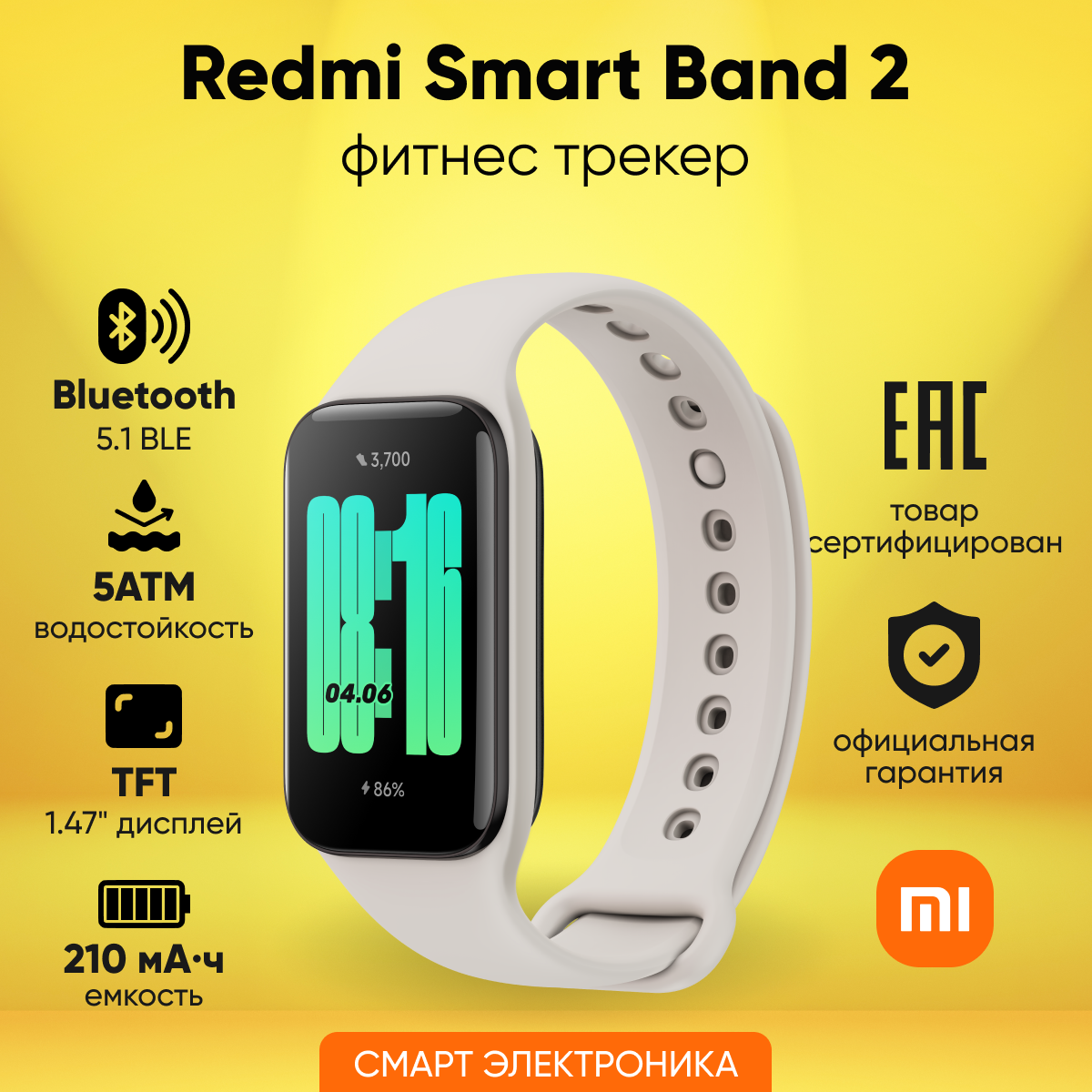 Умный браслет Xiaomi Redmi Smart Band 2 без NFC Global для РФ, слоновая кость