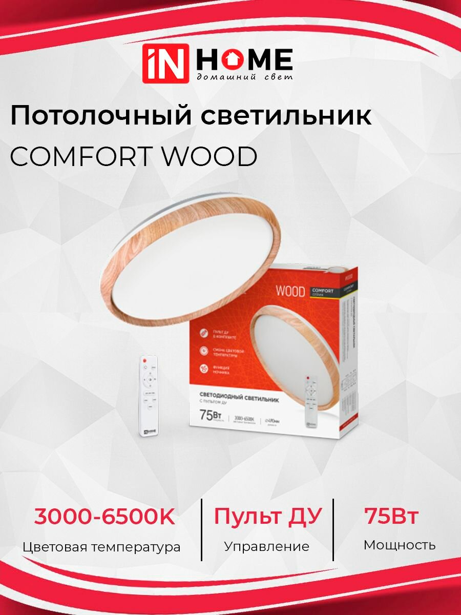 Светильник светодиодный COMFORT WOOD 75 Вт 230В 6000Лм с пультом IN HOME