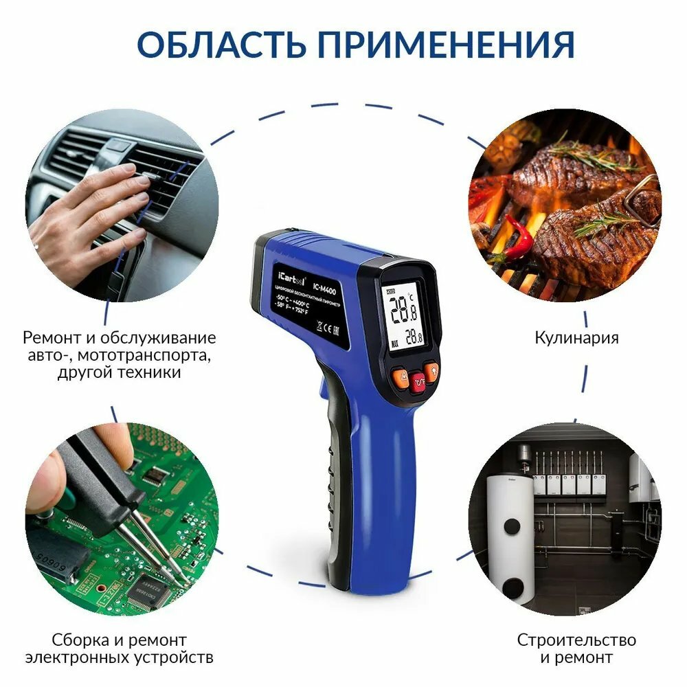 iCarTool Инфракрасный бесконтактный термометр (пирометр) IC-M400 . интересное: