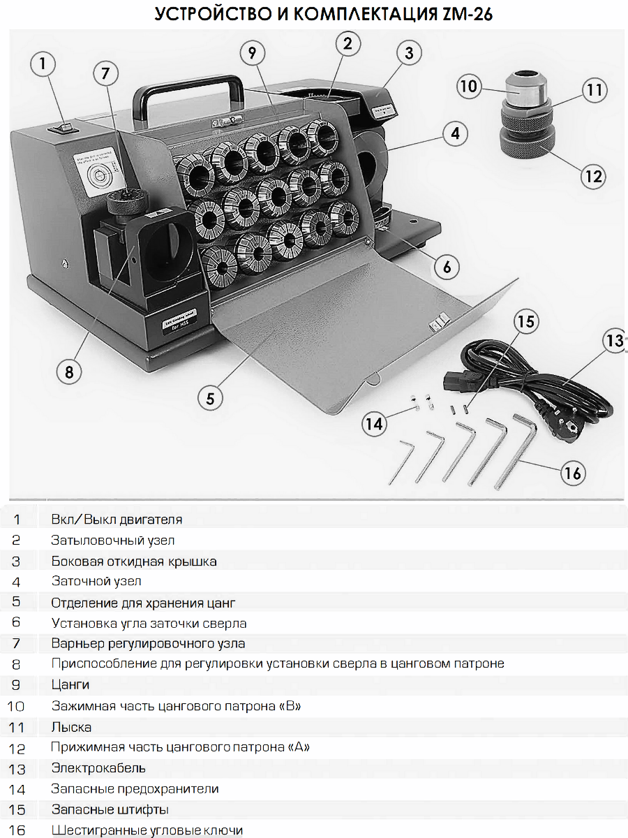 Станок для заточки спиральных сверл AURA TOOLS ZM-26 интересное: