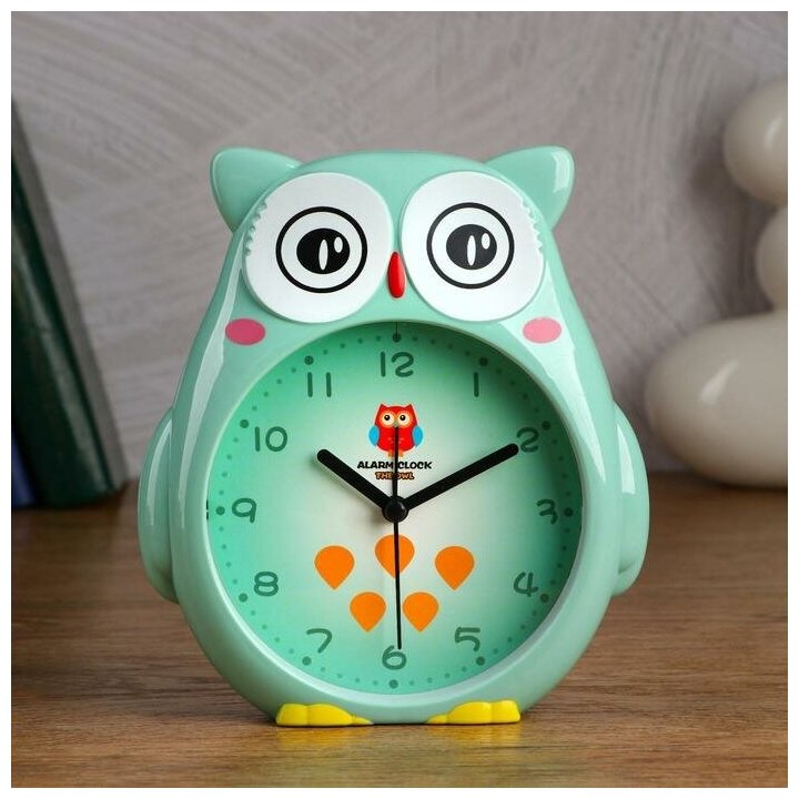 Будильник детский "Совушка" 14.5 х 4 х 16 см, дискретный ход, d=11 см, зеленый