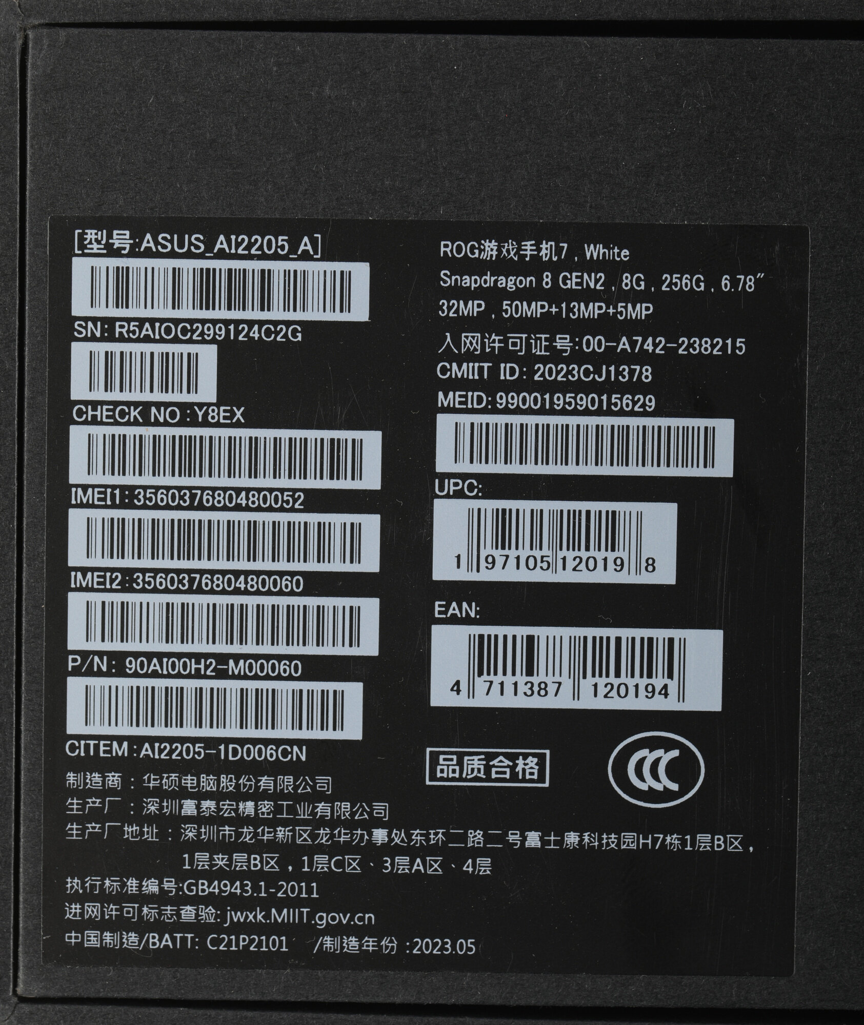 Смартфон Asus AI2205 ROG Phone 7 5G 256Gb 12Gb белый моноблок 3G 4G 2Sim 6.78" 1080x2448 Android 13 50Mpix 802.11 a/b/g/n/ac/ax/be NFC GPS GSM900/1800