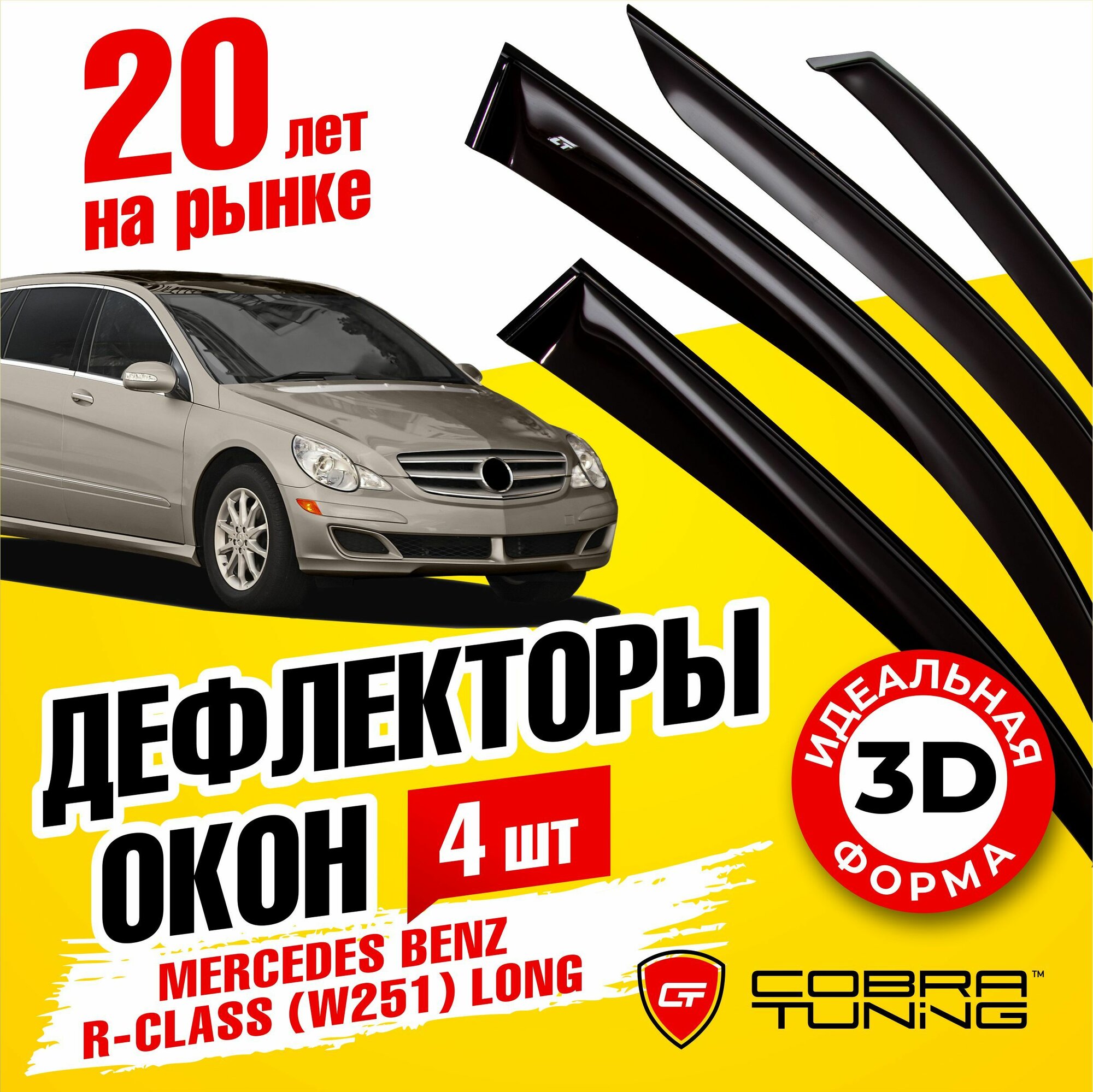 Купить Дефлекторы боковых окон для Mercedes Benz R-class (Мерседес Бенц Р-класс) (W251) Long 2005-2017, ветровики на двери автомобиля, Cobra Tuning