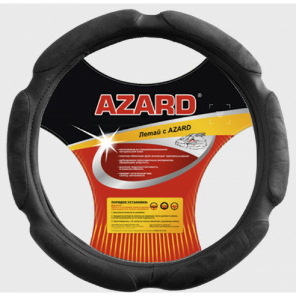 AZARD ОПЛ00083 Оплетка руля (XL) 41-43см черная спонжевая (6 подушек) AZARD