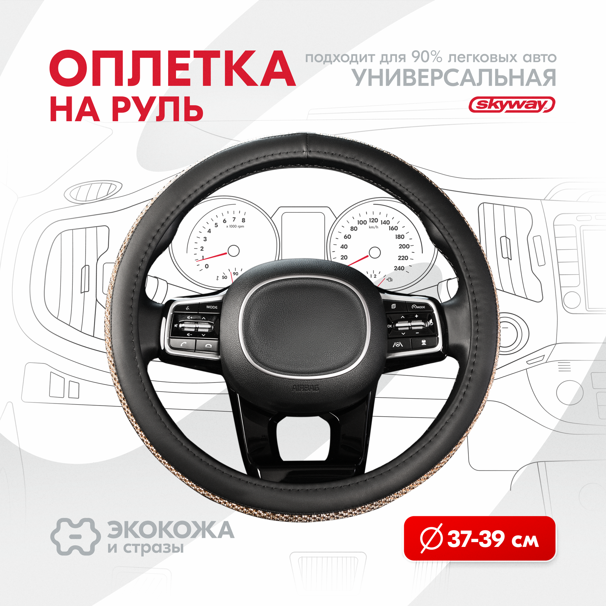 Оплетка руля SKYWAY Crystal-1 экокжа со стразами, размер M, диаметр 37/38/39 см, S01102466