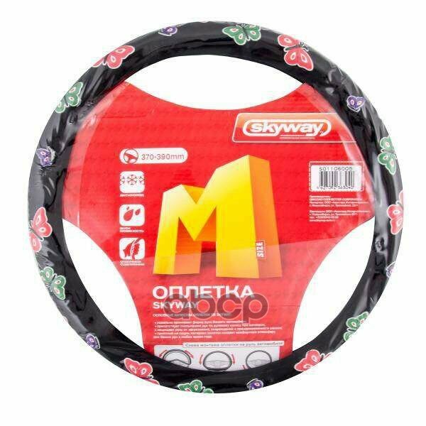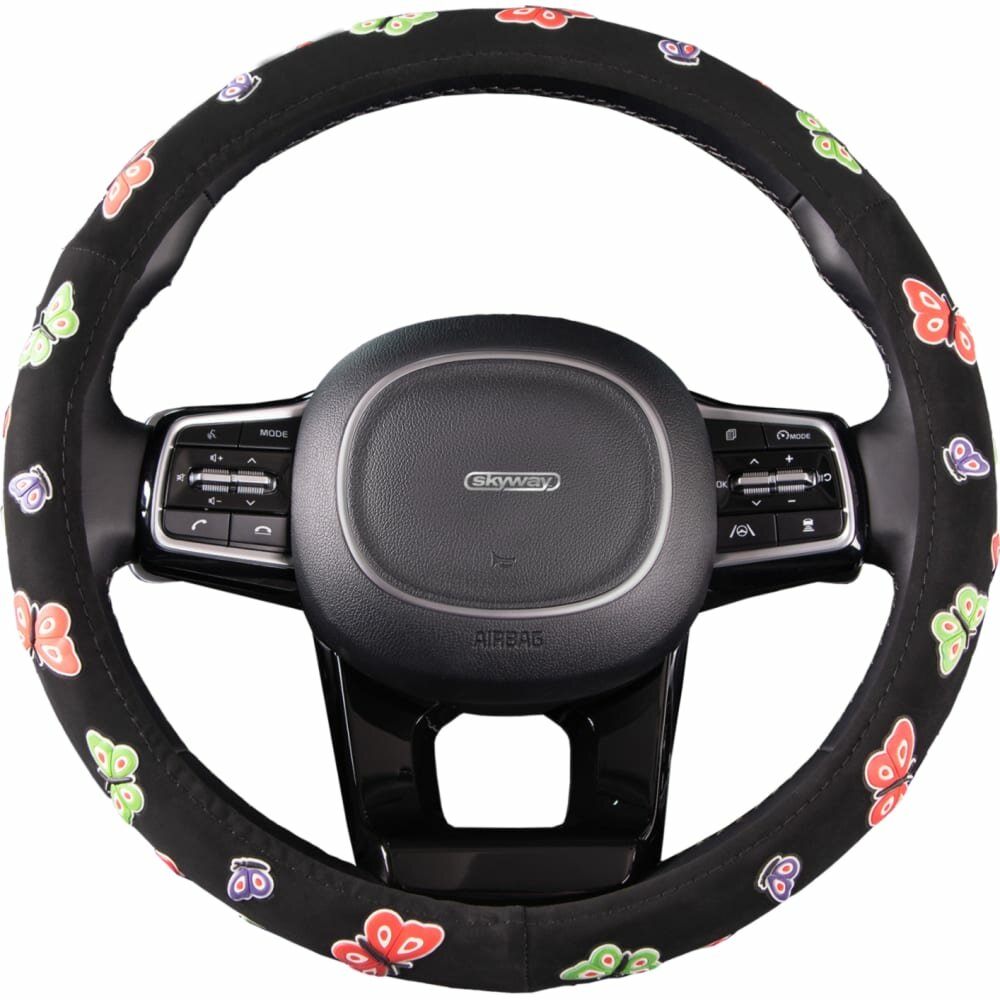 Оплётка руля SKYWAY вельвет гладкая черная с рисунком "Бабочки" ECO (M)
