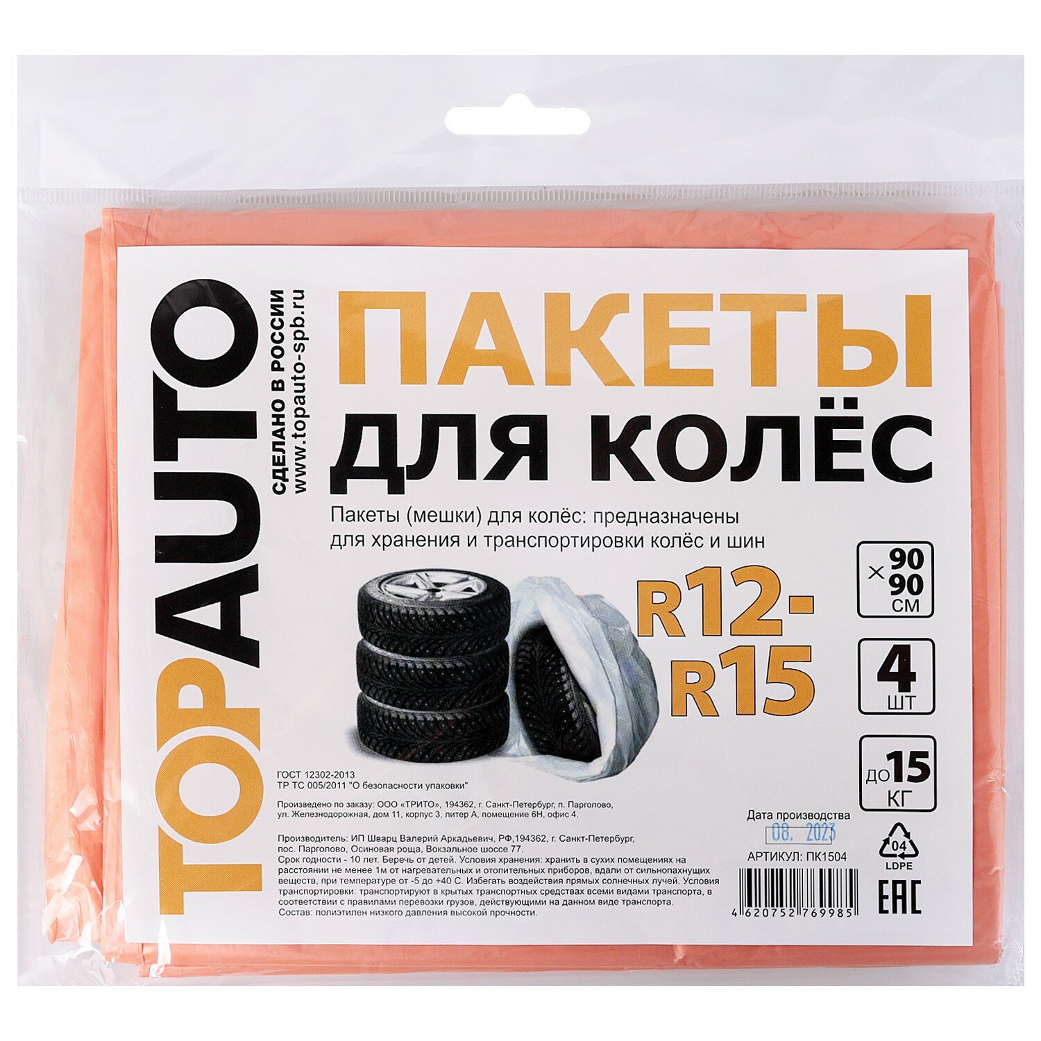Пакеты для колес R12-R15 90x90см, европодвес 4шт. PK1504 интересное: