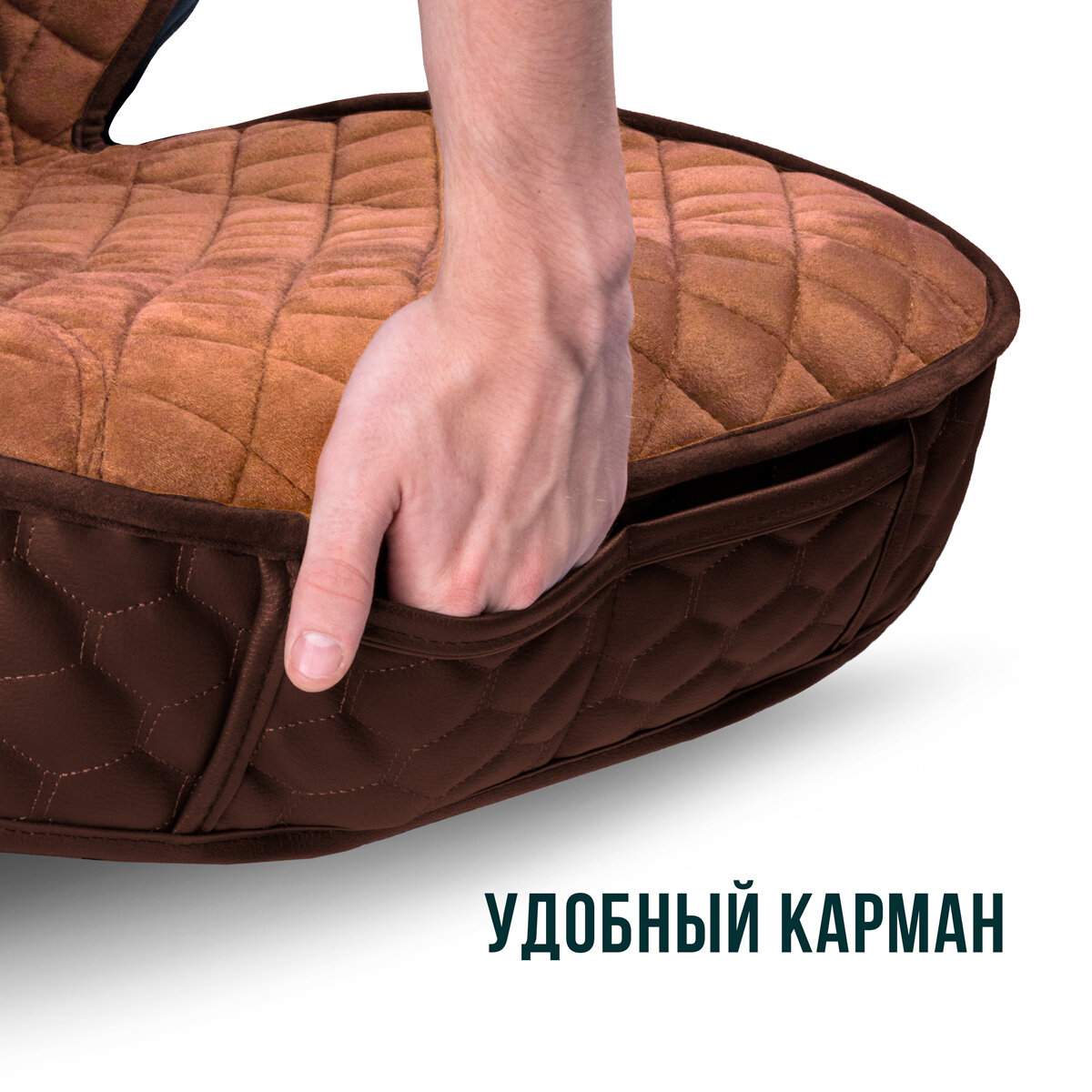 Купить BARASHKOV/ Накидка на сиденье автомобиля из алькантары с боками и юбкой. Модель XL/ Коричневый