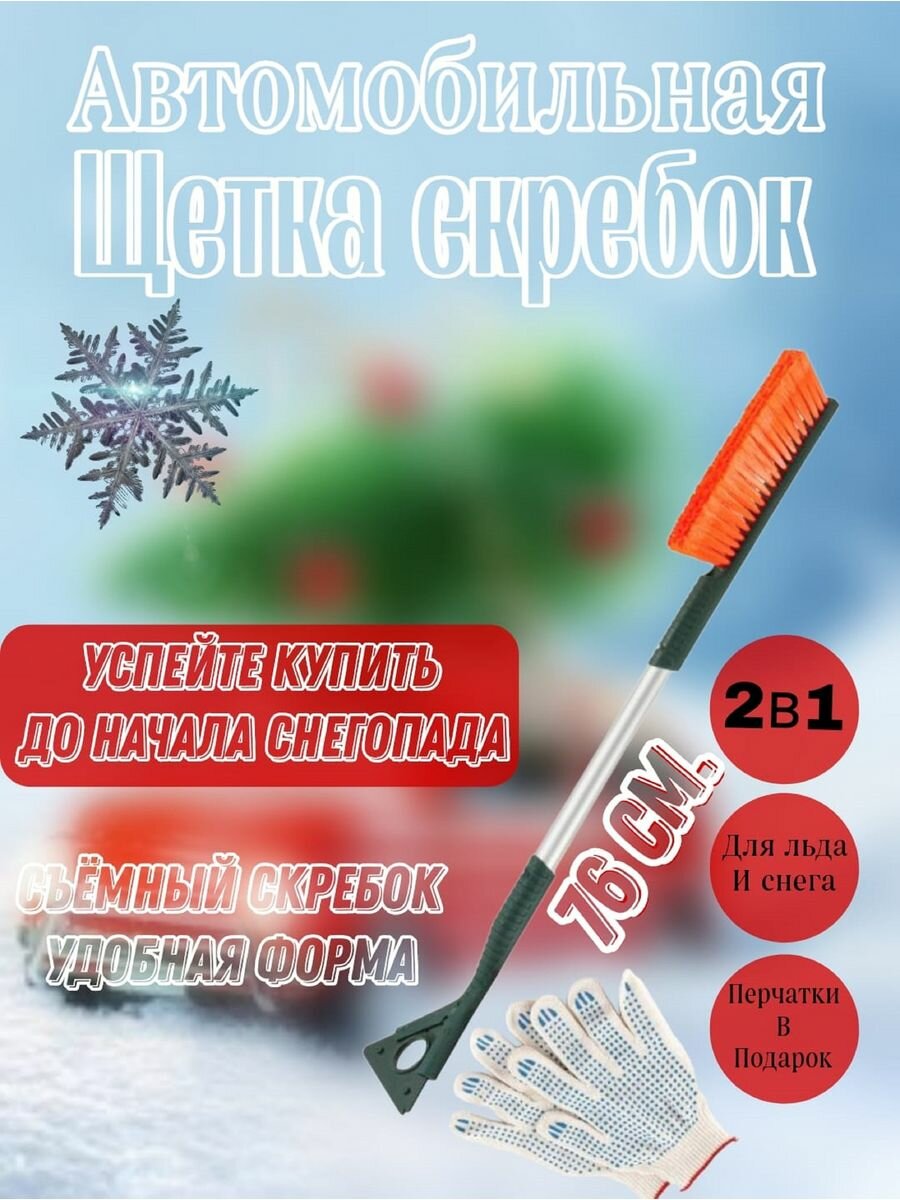 Купить LI-SA щетка для снега cо скребком оранжево-зеленая со съемным скребком (76 см) (ls281) 47013