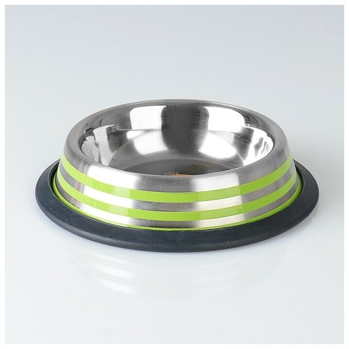 Купить Миска для животных для кошек Пижон, с нескользящим основанием, с цветными полосками, зеленая, 230 мл