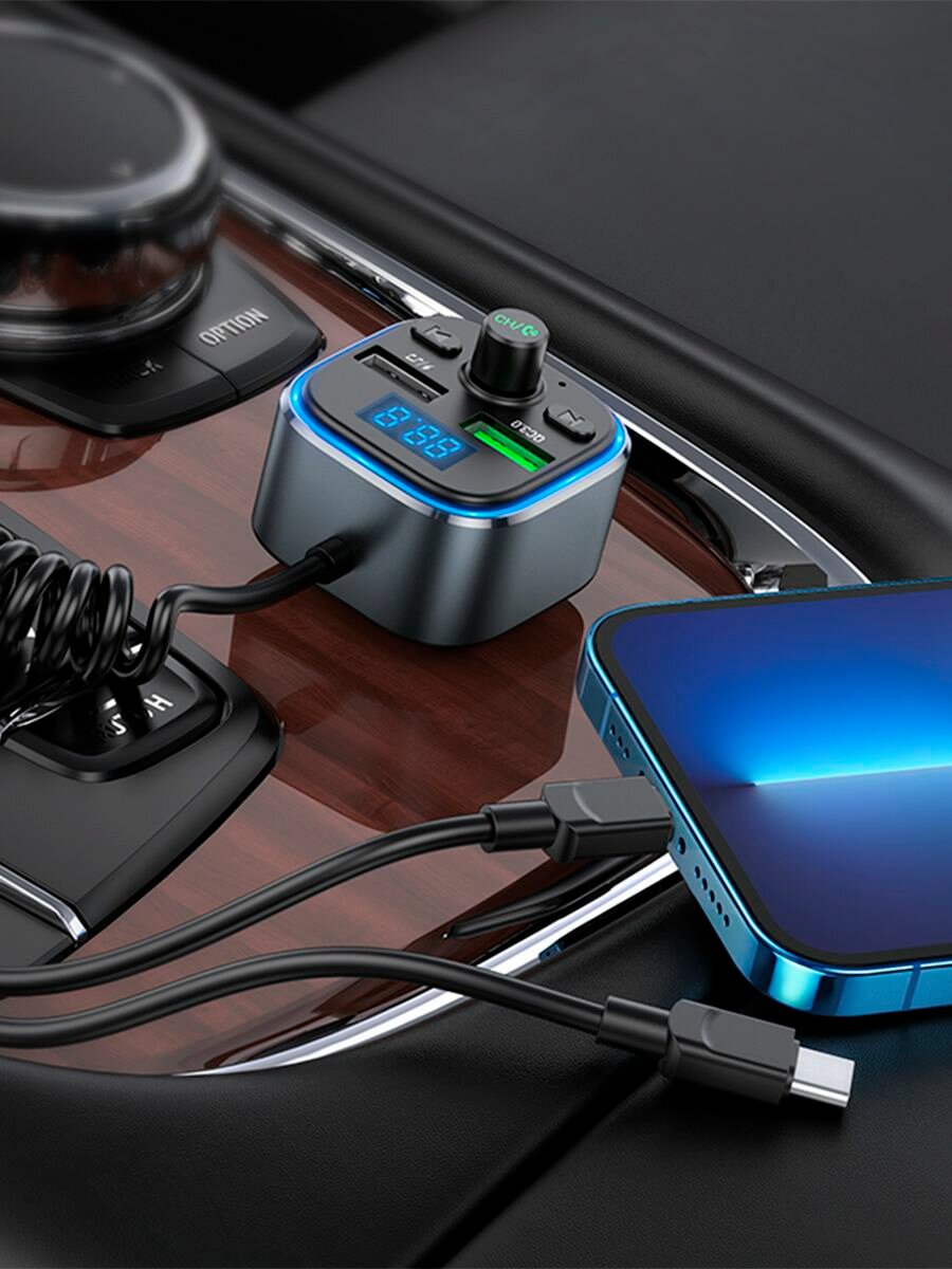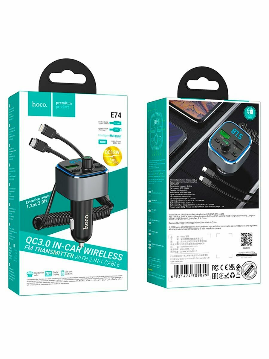 FM-трансмиттер Bluetooth 5.0 E74 с быстрой зарядкой, модулятор в автомобиль, блютуз трансмиттер в прикуриватель машины, автомобильное зарядное устройство