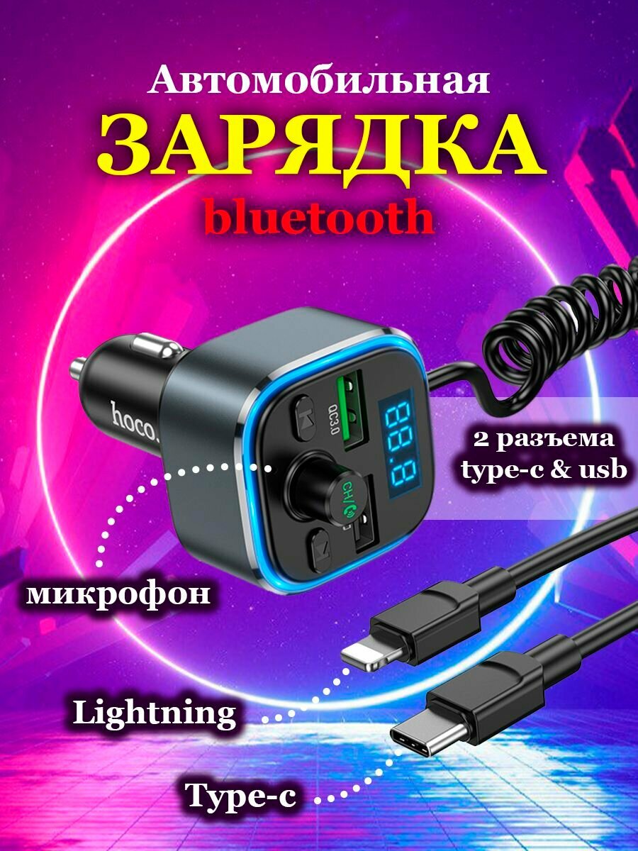 Орбита / TS-CAF120 FM-трансмиттер с bluetooth/микрофоном/ для автомобиля/ зарядник QC 3.0 для авто в прикуриватель