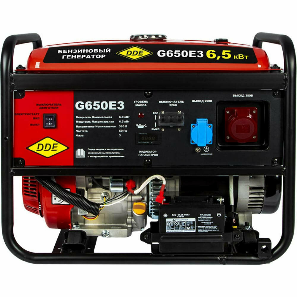 Купить Генератор (электростанция) бензиновый DDE G650E3 (1+3ф 6,0/6,5 кВт бак 25 л 89 кг дв-ль 14 л.с. элст