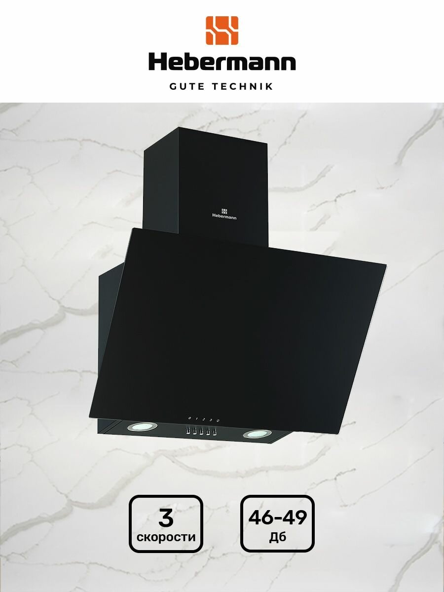 Наклонная кухонная вытяжка Hebermann HBKH 60.4 B, 60 см, черная, окрашенная сталь, стекло интересное: