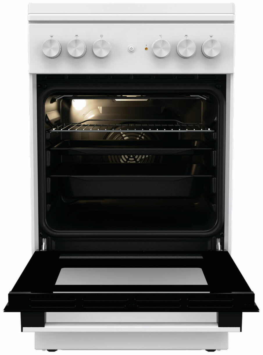 Комбинированная плита Gorenje GK5A42WF-B, 4 газовые конфорки с электроподжигом и газ-контролем, электрическая духовка HomeMADE 62 л, 8 режимов, гриль с вентилятором, белый