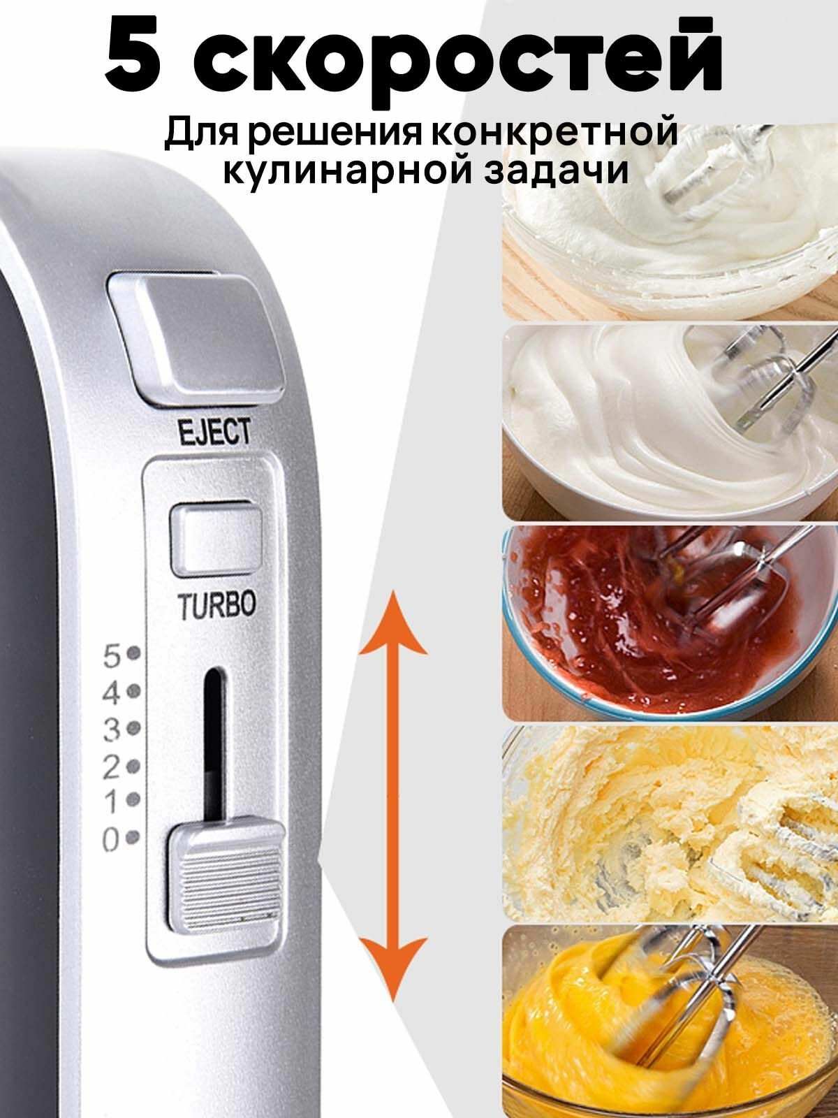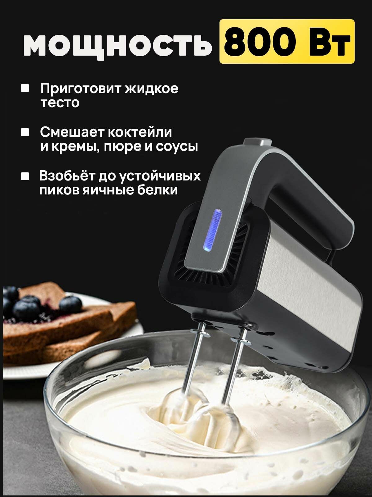 Миксер ручной электрический. 2 пары насадок. 5 скоростей. Режим Турбо. Мощность 800 Вт интересное: