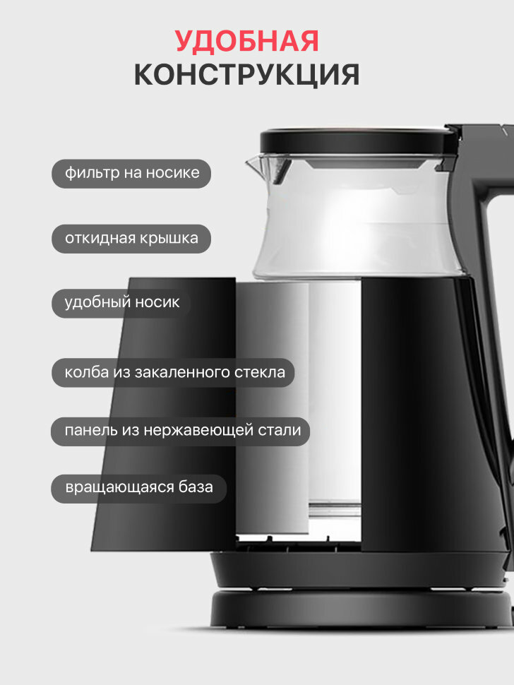 Чайник STARWIND SKG4777 черный/серебристый стекло