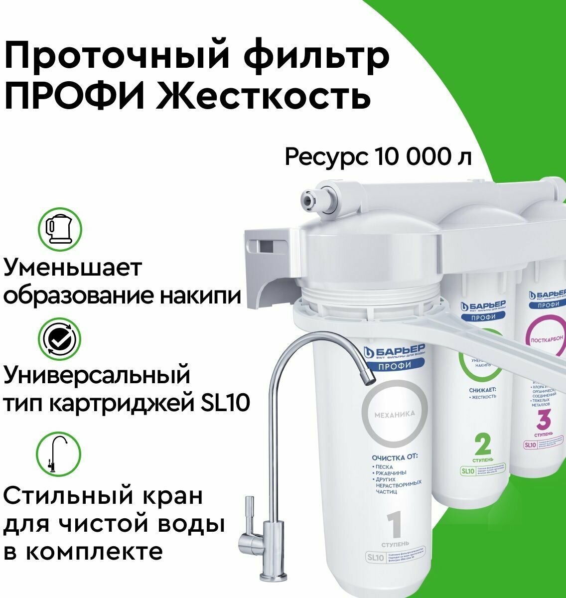 Фильтр под мойку для очистки воды Барьер профи жесткость (исп. Лайт) SL'10, от солей жесткости Н123Р00