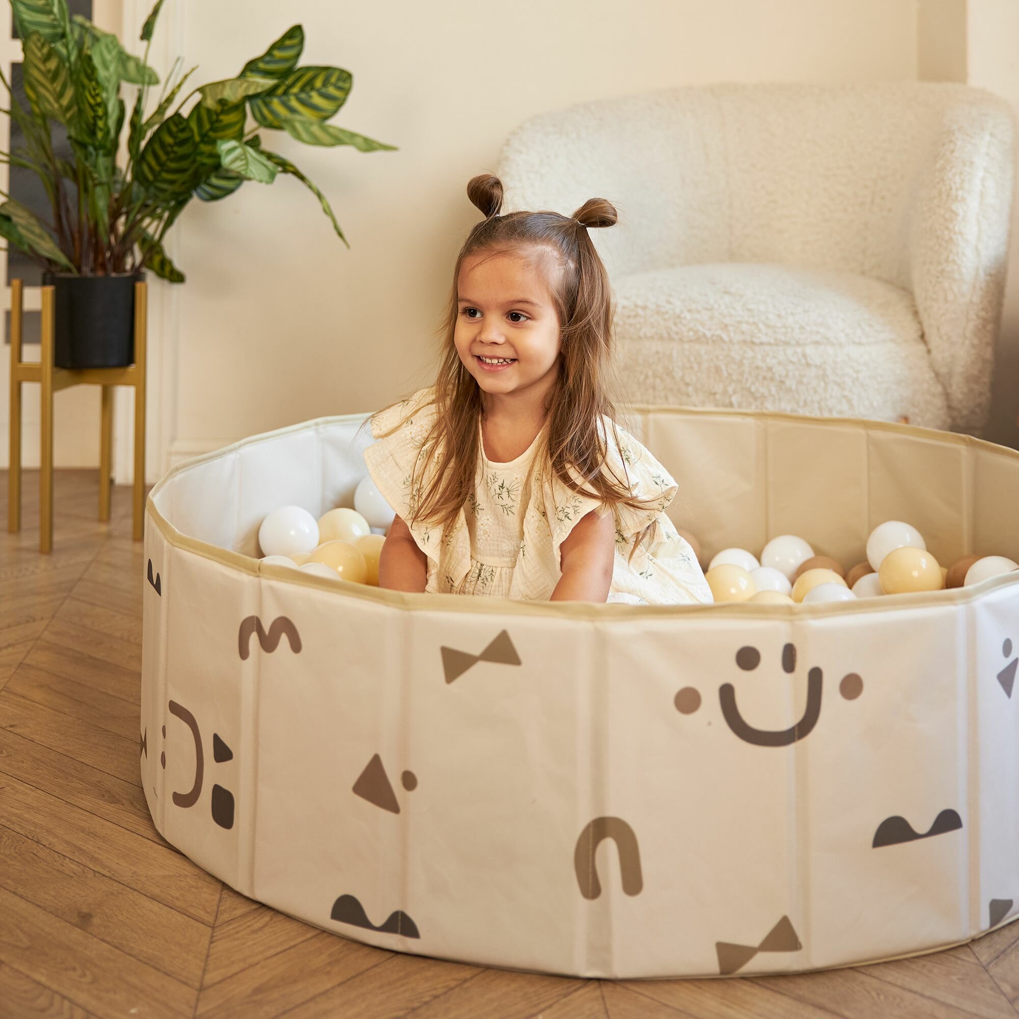 Купить Детский сухой бассейн UNIX Kids Smile 100 Camel + 150 шариков 3 цвета, складной, сумочка в комплекте, высота бортиков 30 см, диаметр шарика 70 мм