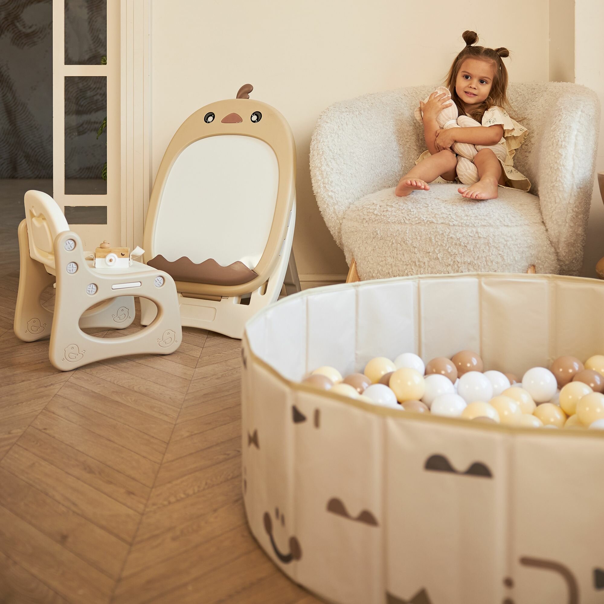 СохранитьДетский сухой бассейн UNIX Kids Smile 100 Camel + 150 шариков 3 цвета, складной, сумочка в комплекте, высота бортиков 30 см, диаметр шарика 70 мм интересное: