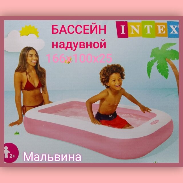 СохранитьБассейн надувной INTEX,, прямоугольный, 166 х 100 х 25 см, от 2 лет, 58423NP, розовый Т интересное: