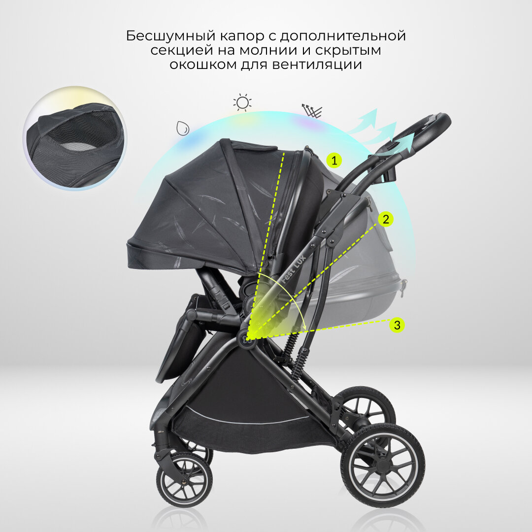 Купить Прогулочная коляска детская с реверсивным блоком Farfello Fest Lux, черное перышко