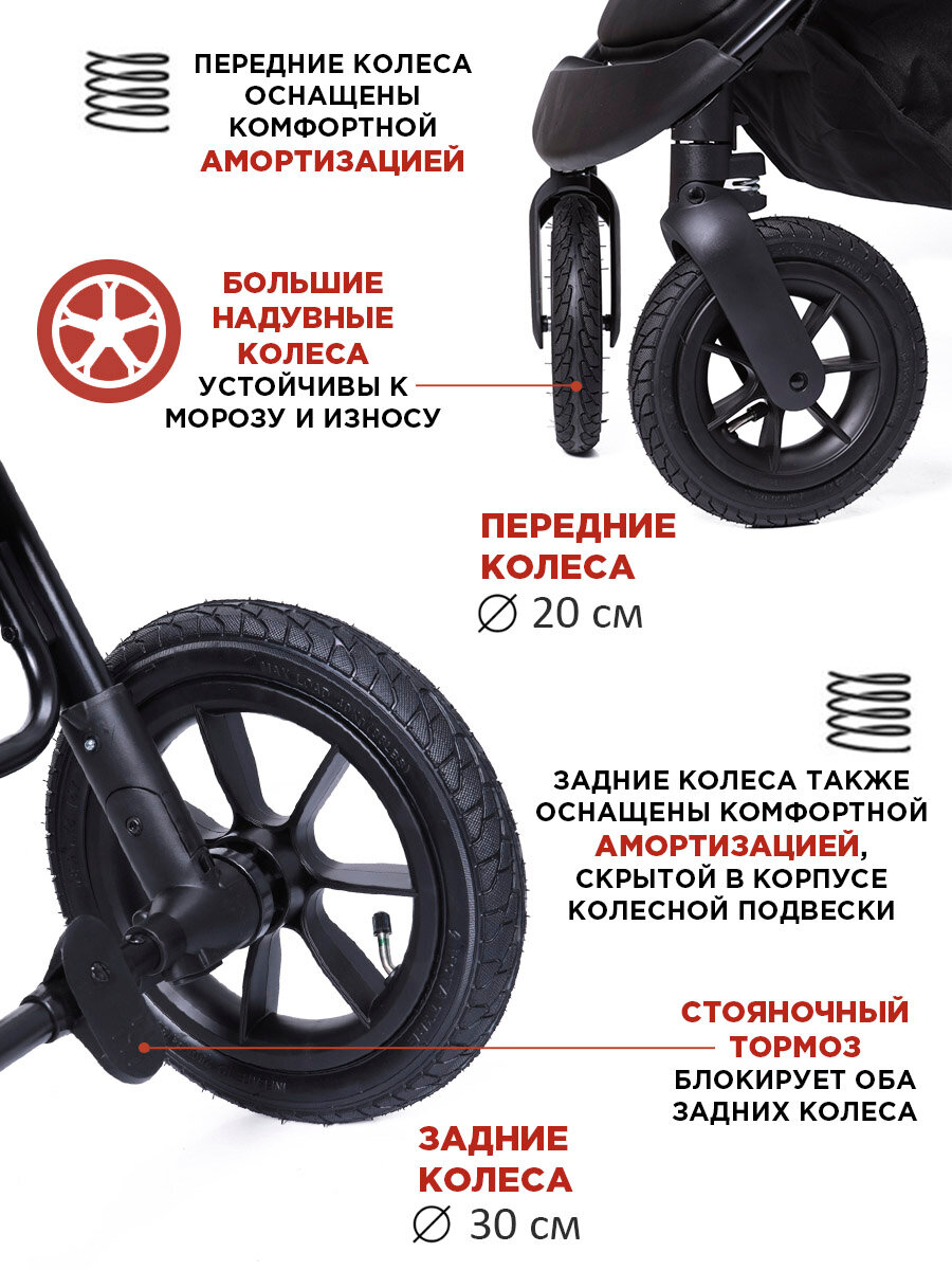 BabyCare Прогулочная Коляска Venga с надувными колесами и нагрузкой до 22кг, черный
