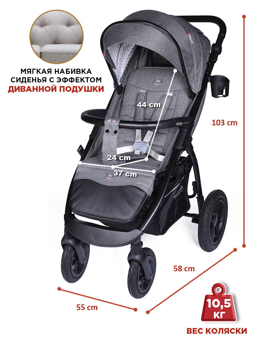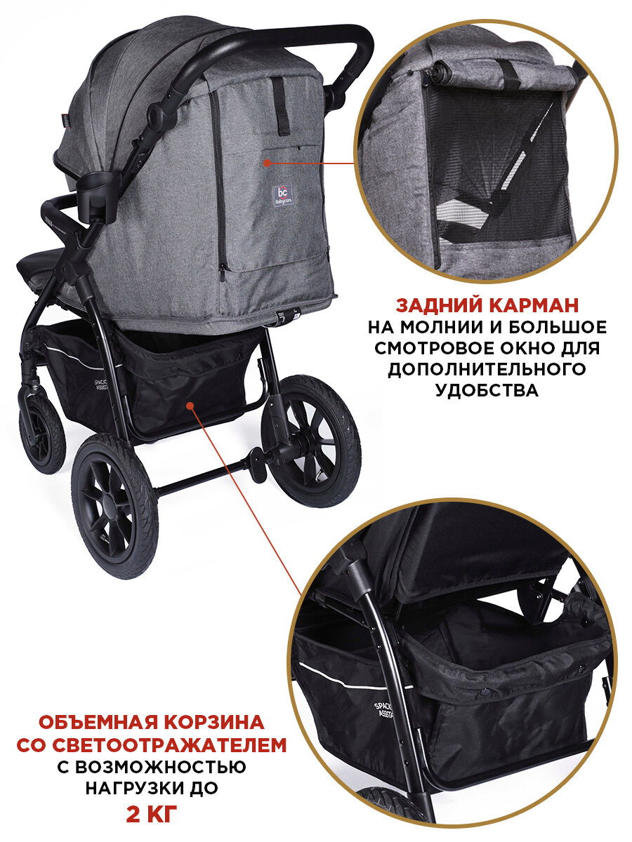 Купить BabyCare Прогулочная коляска Venga с надувными колесами, нагрузка до 22кг, серый меланж
