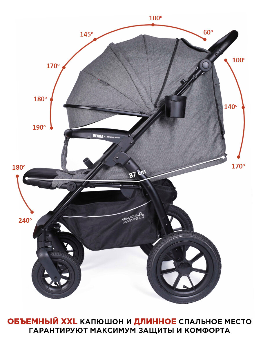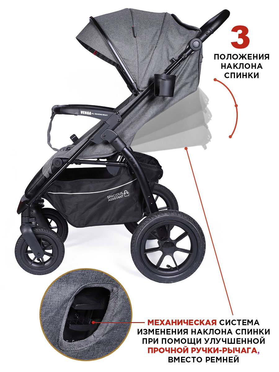 СохранитьBabyCare Прогулочная коляска Venga с надувными колесами, нагрузка до 22кг, серый меланж интересное: