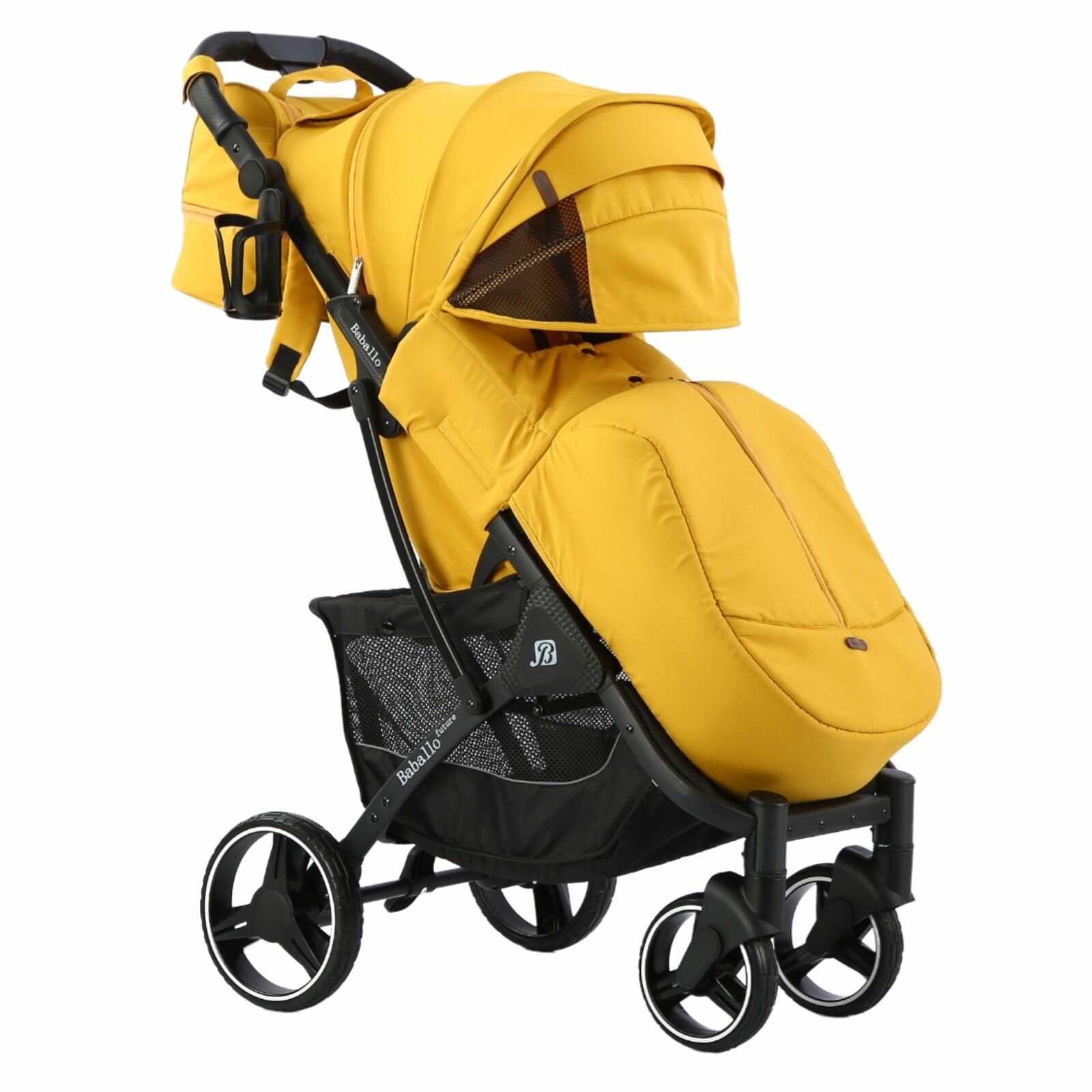 Купить Коляска прогулочная Babalo future 2023, цвет Желтый на черной раме + сумка на коляску (механическая регулировка спинки)