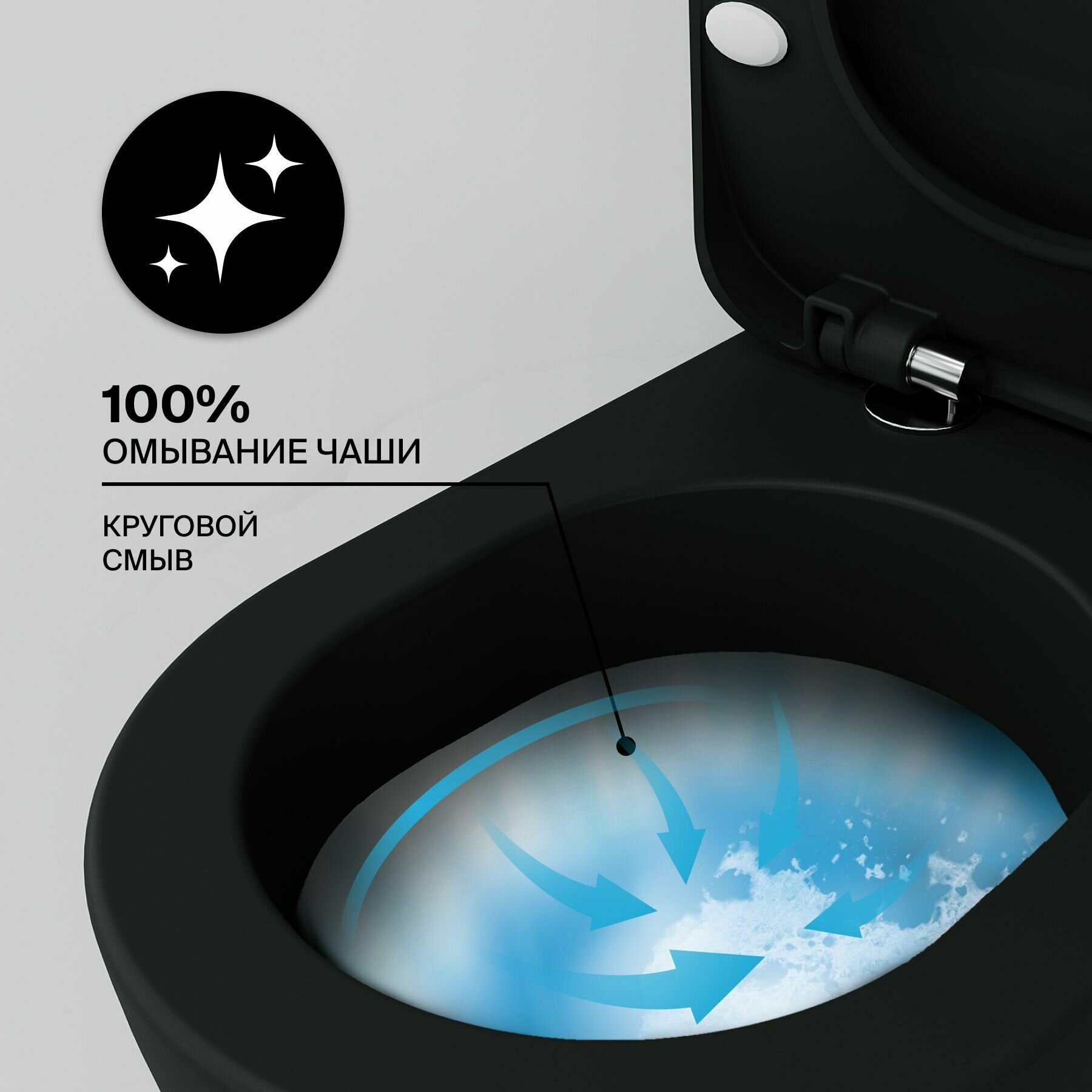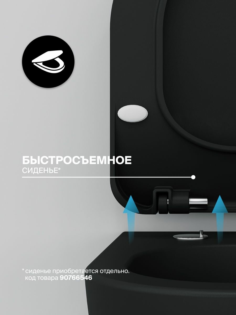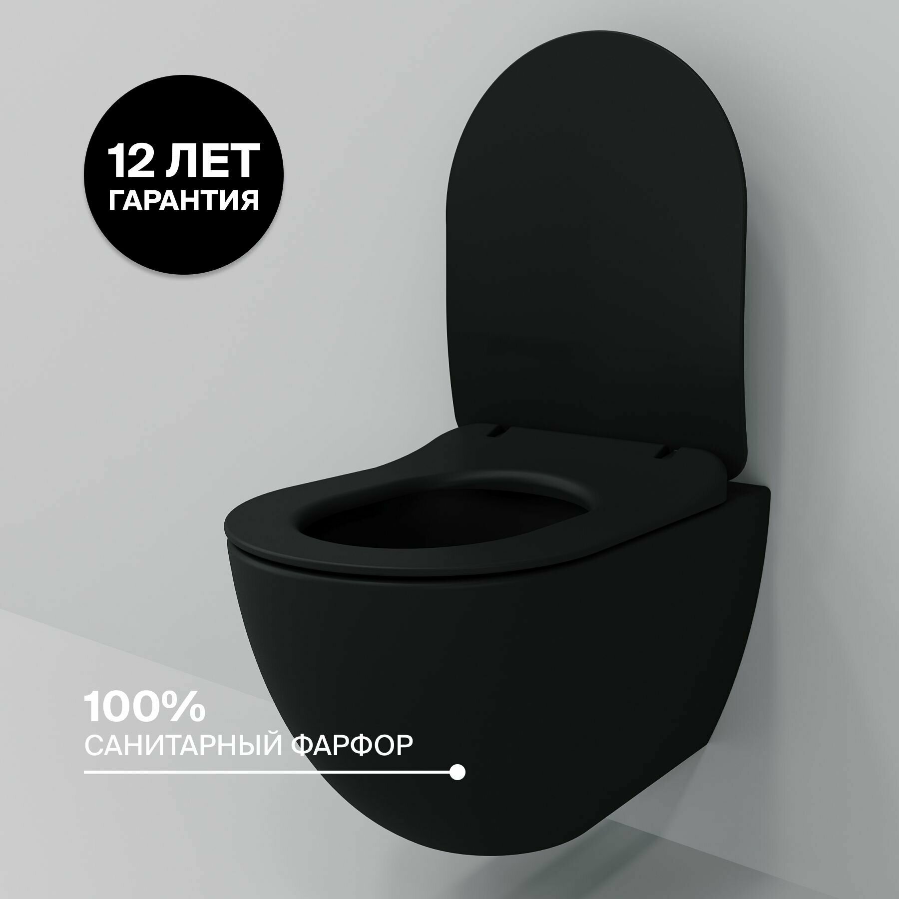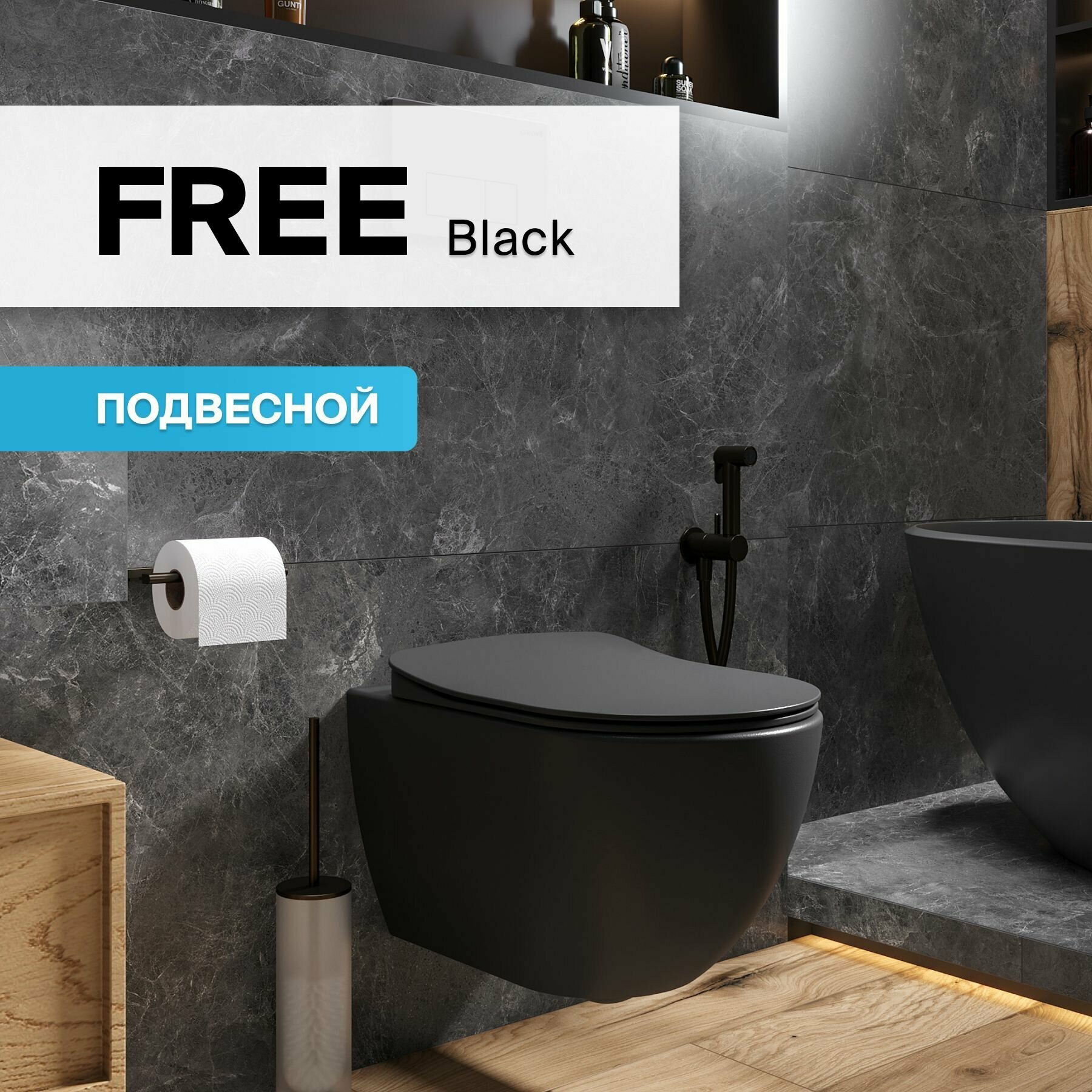 Унитаз подвесной Free безободковый, цвет черный матовый, горизонтальный выпуск в стену Гарантия 12 лет Сиденье приобретается отдельно