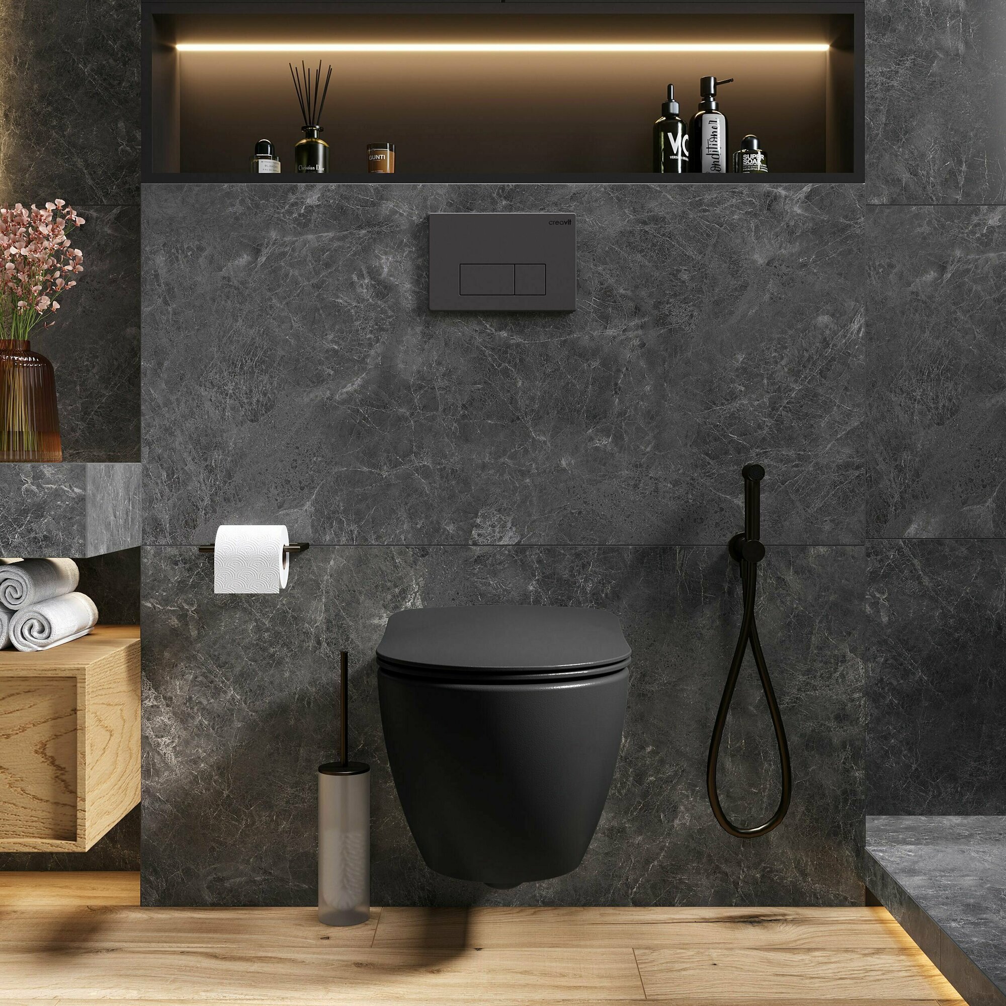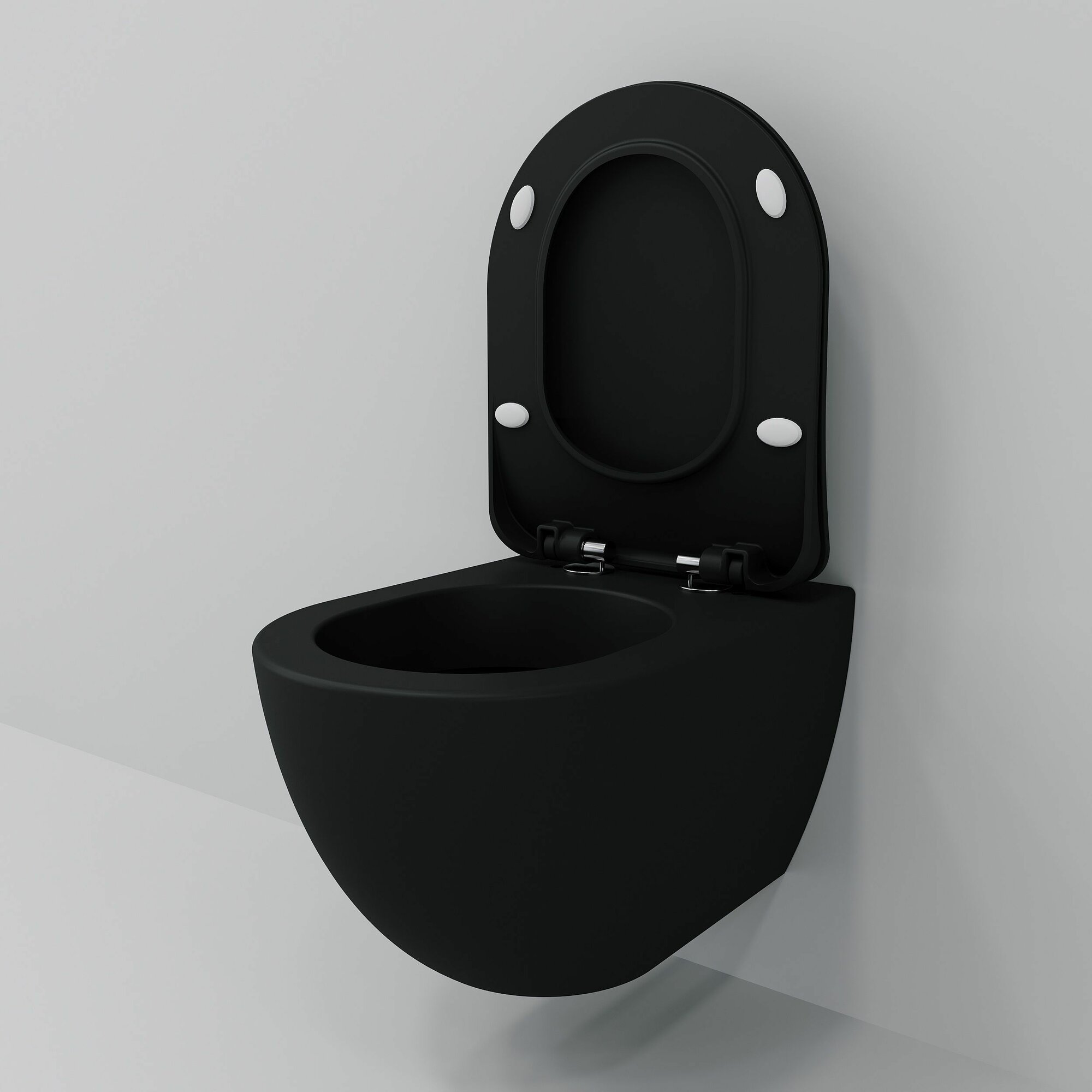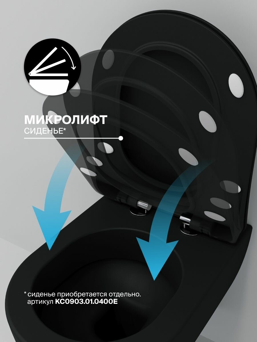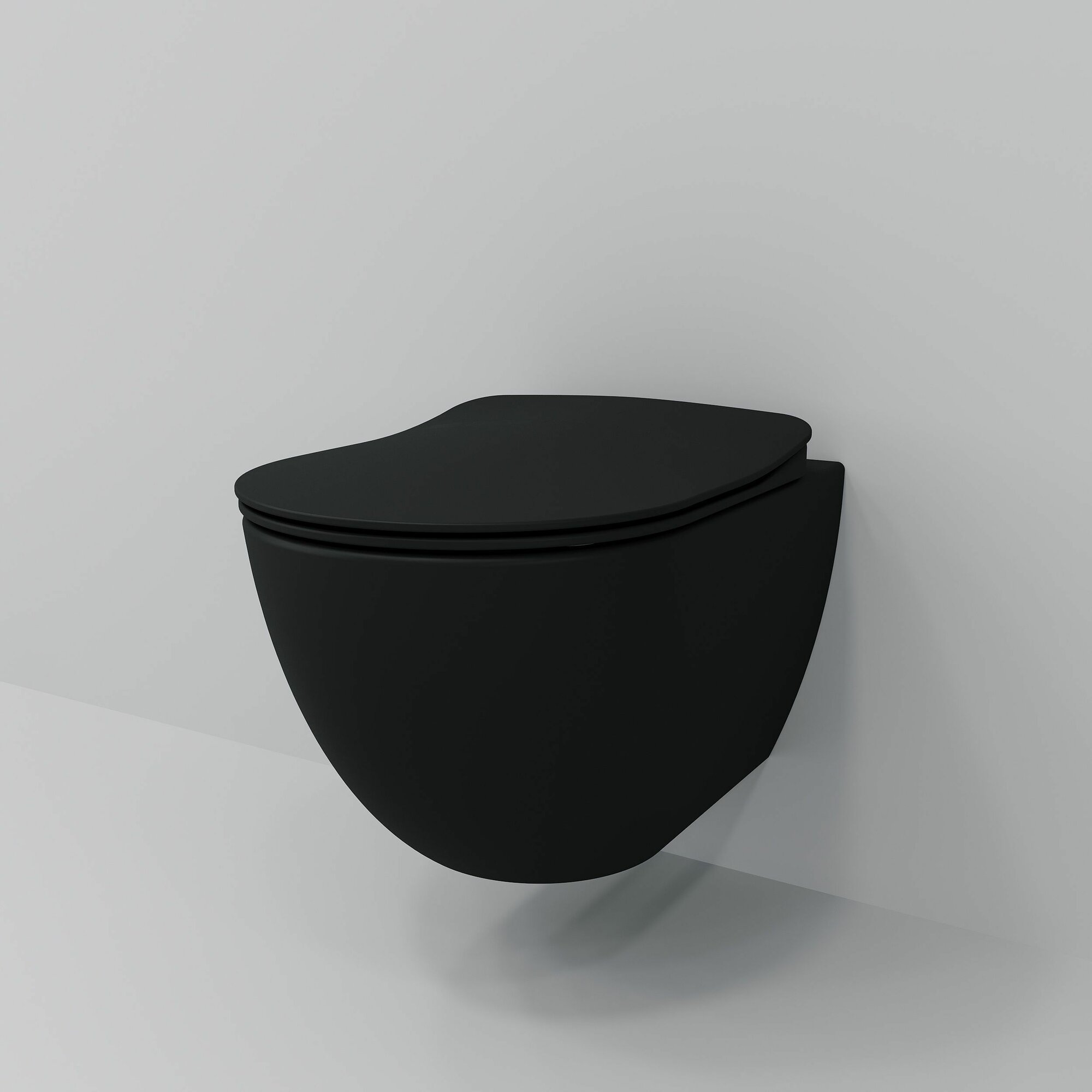 Унитаз подвесной Free безободковый, цвет черный матовый, горизонтальный выпуск в стену Гарантия 12 лет Сиденье приобретается отдельно