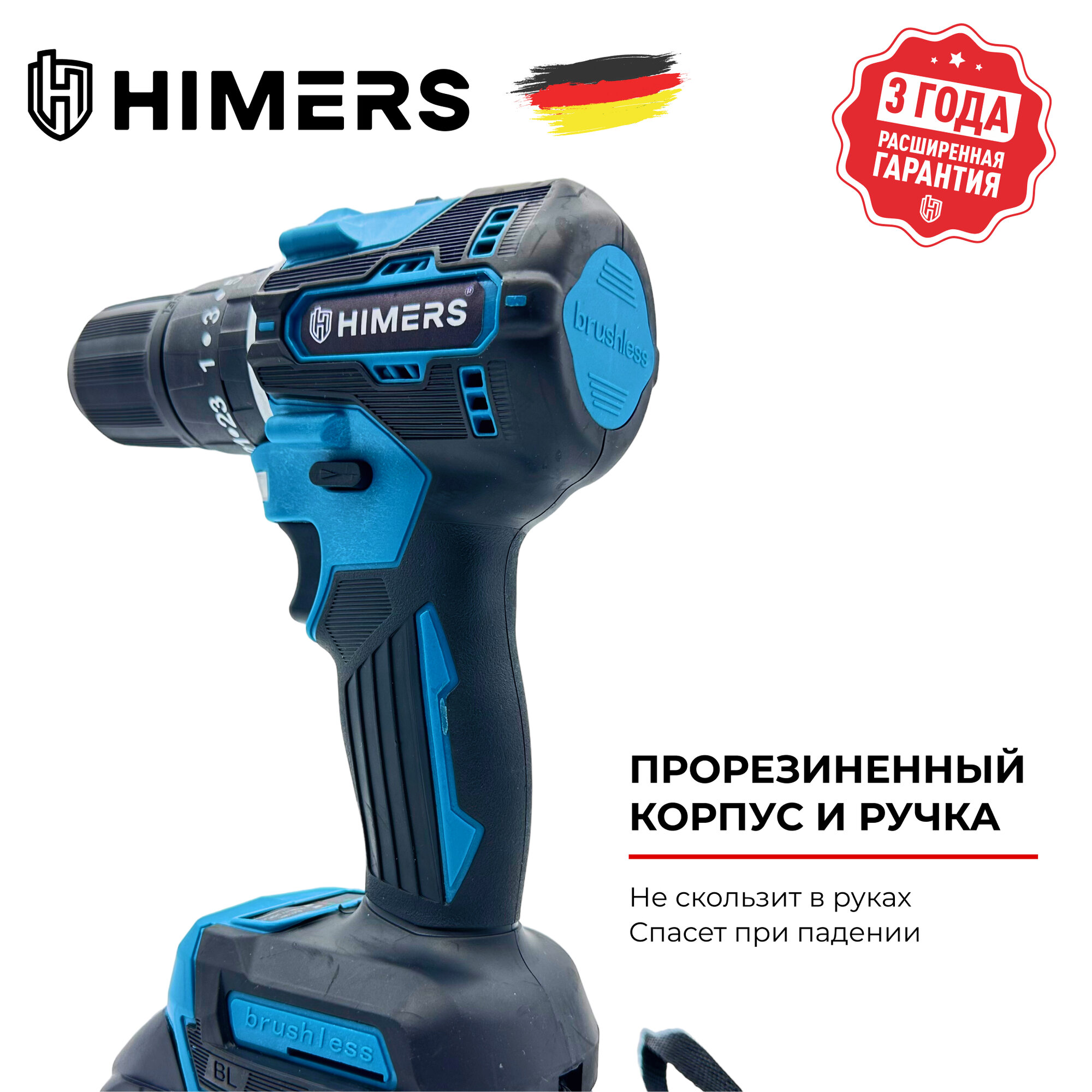 Бесщеточный шуруповерт HIMERS DF60В-BL аккумуляторный 18V, 2 АКБ по 3 А. ч, 60 Н. м, кейс сталь