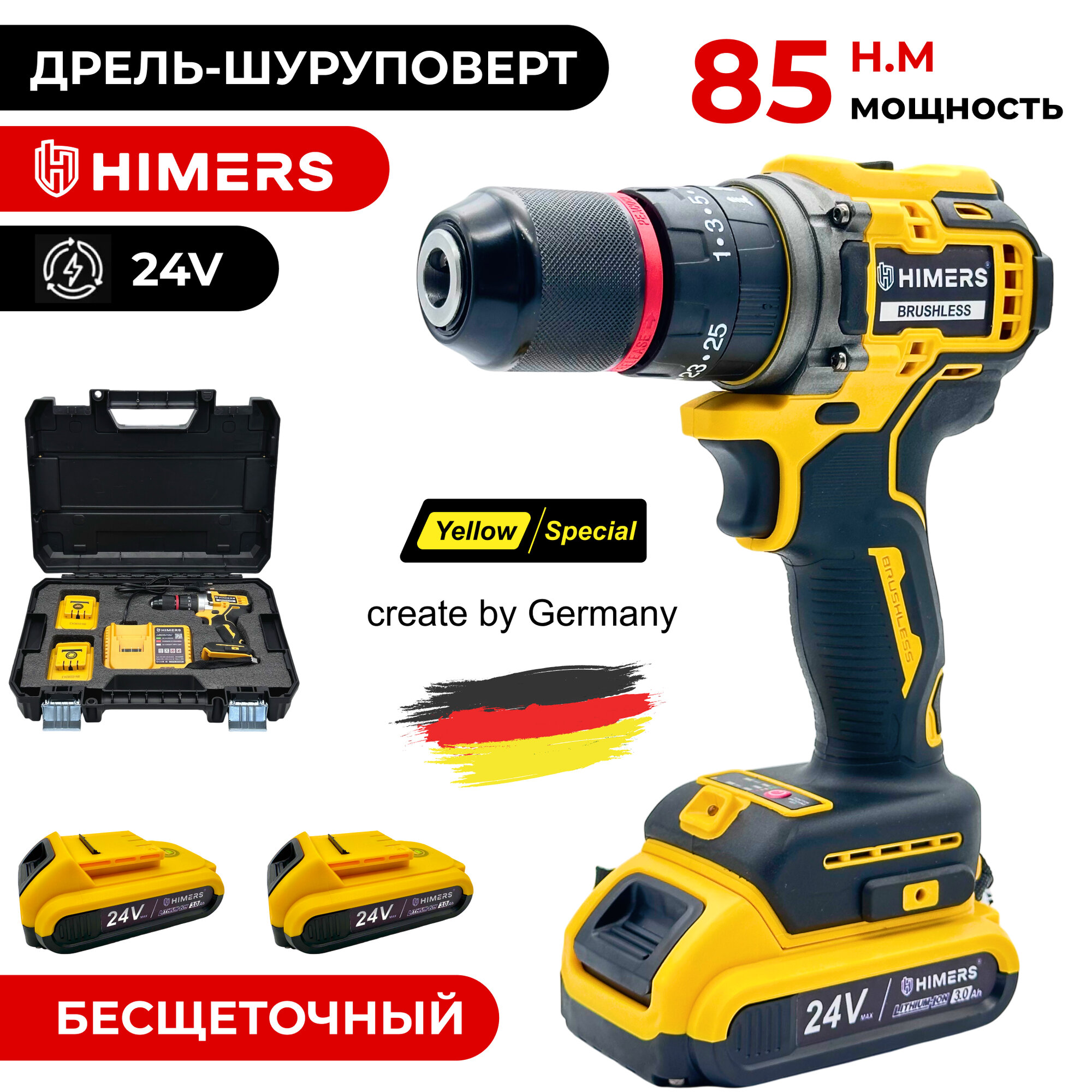 Бесщеточный ударный шуруповерт HIMERS DF85Y-BL аккумуляторный 24V, 2 АКБ по 3 А.ч., 85 Н.м., Версия Yellow special / Кейс / многофункциональный для сверления, закручивания 24в
