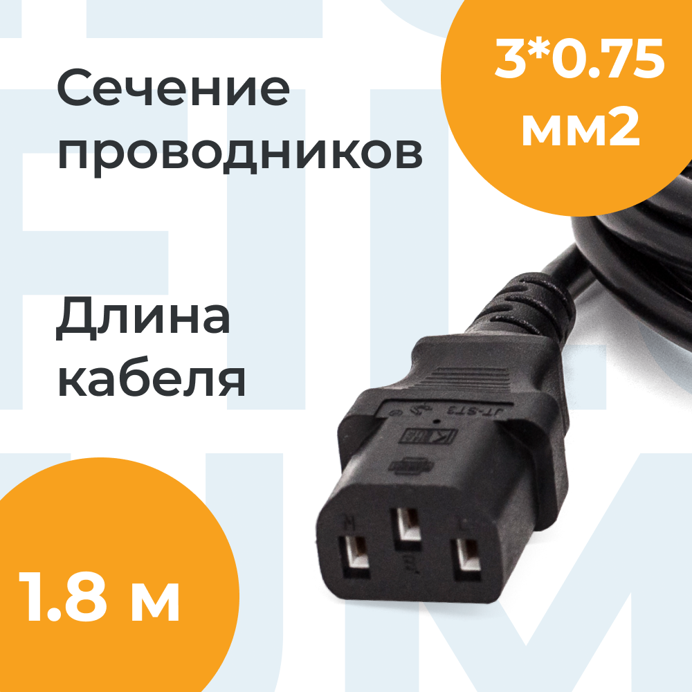 Купить Filum Кабель питания С13- C14, 3х0.75мм, 220В, 10A, чёрный, 1.8м [FL-PC10-C13-C14-1.8M] (873348)