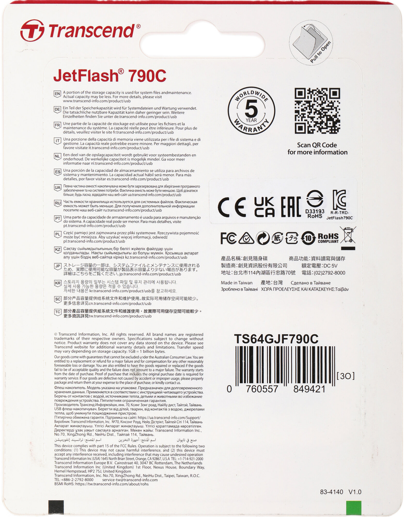 USB Flash Drive Transcend JetFlash 790C 64Gb 3.2 (TS64GJ790C) интересное:
