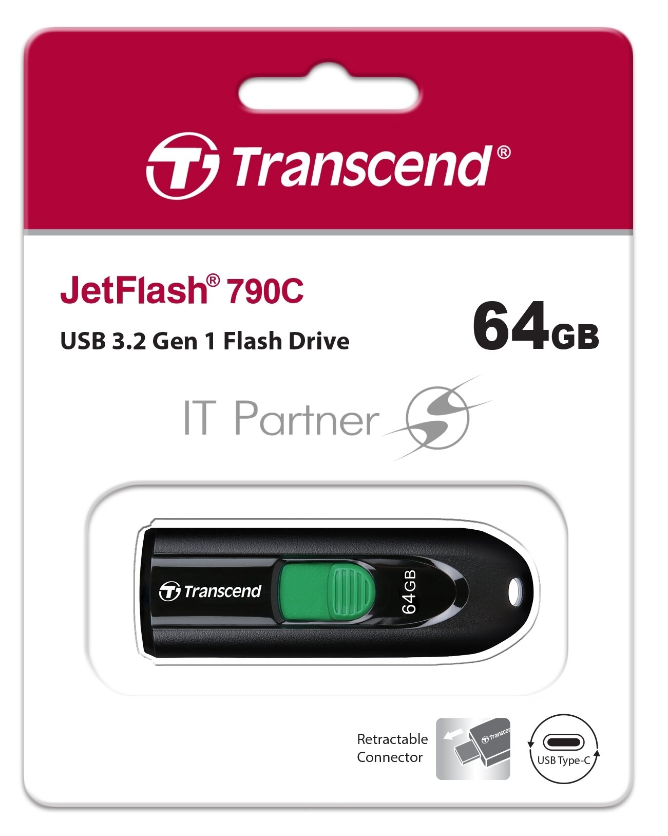 Флеш диск 64Gb Transcend Jetflash Type-C 790С Ts64gjf790c USB3.0 черный