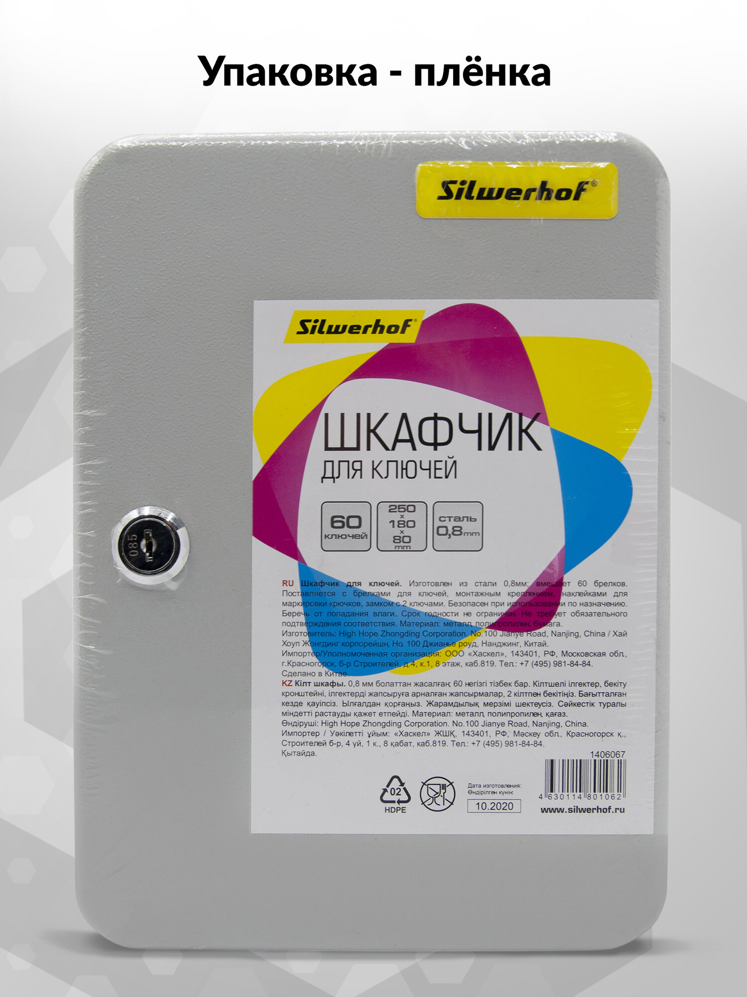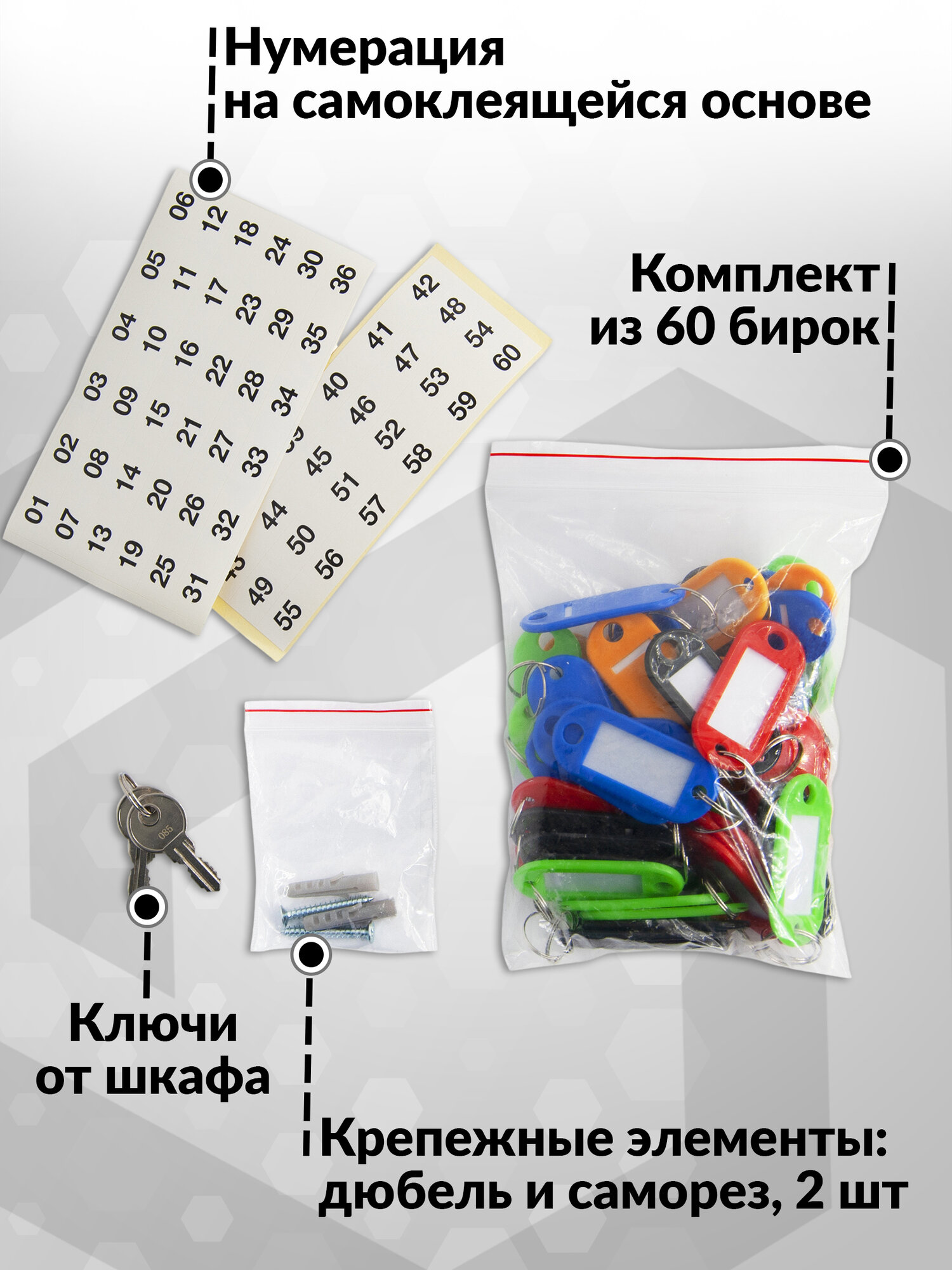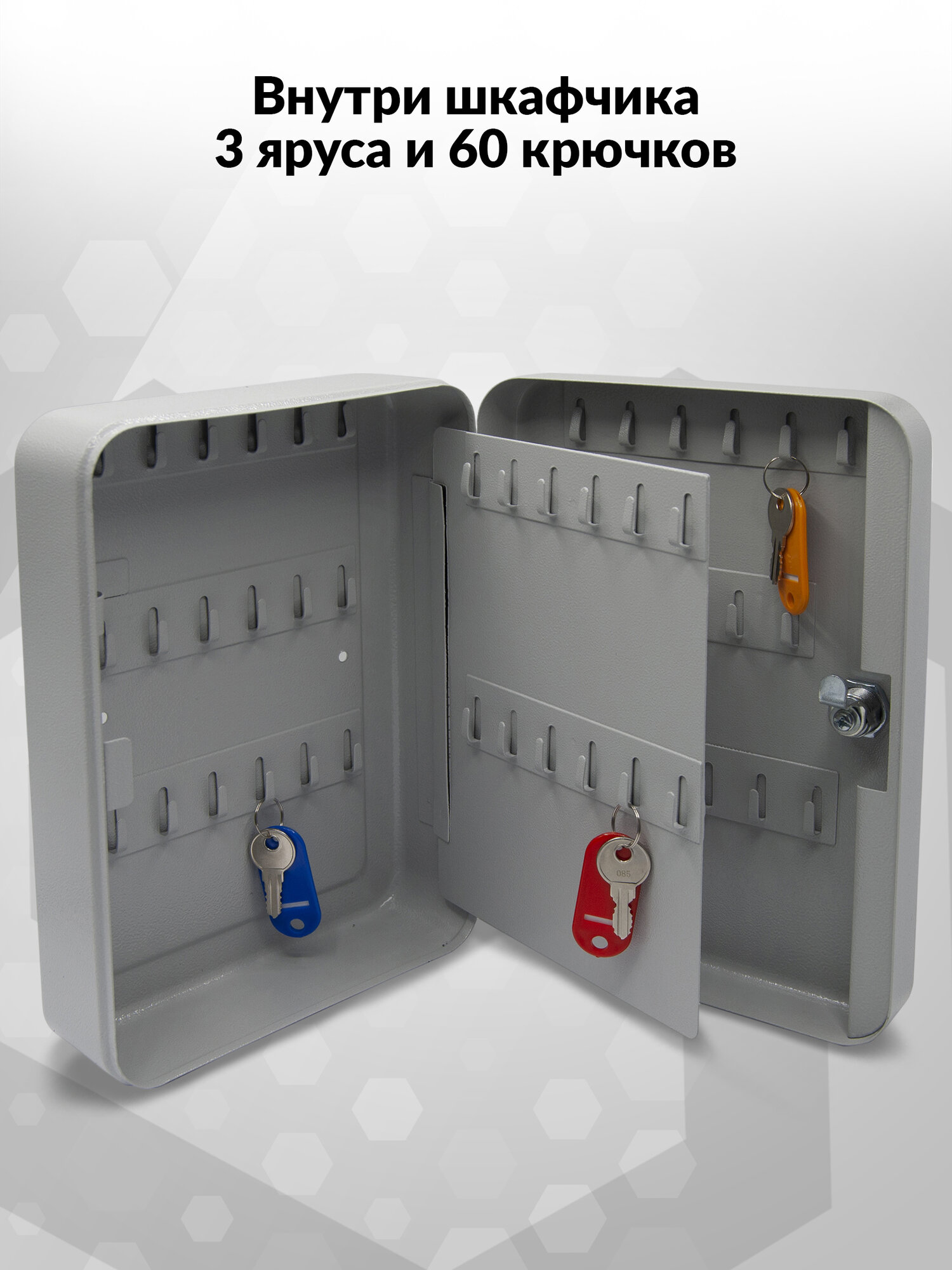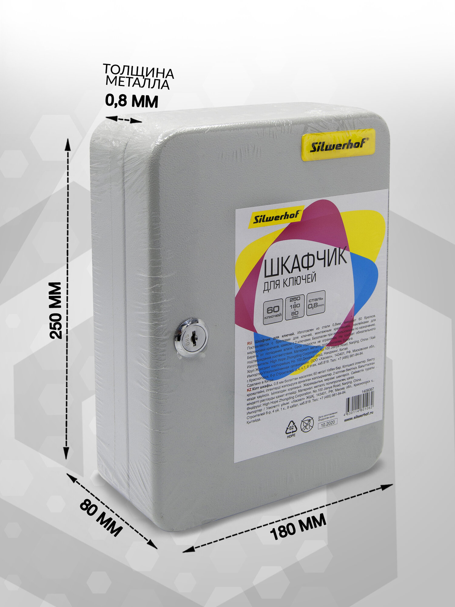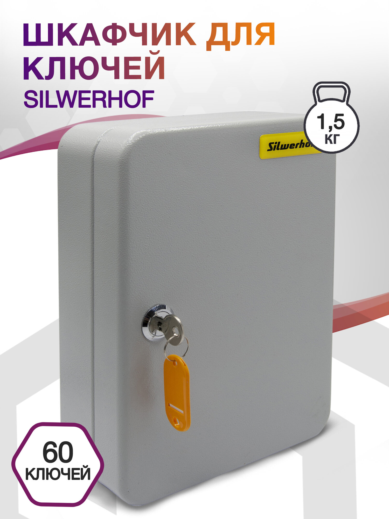 Шкафчик для ключей Silwerhof 60шт ключ., 60 брелков, металл, серый интересное: