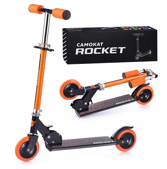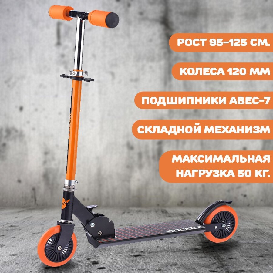 Самокат складной, двухколесный ROCKET, оранжевый, рекомендуемый рост ребенка: 95 – 125 см