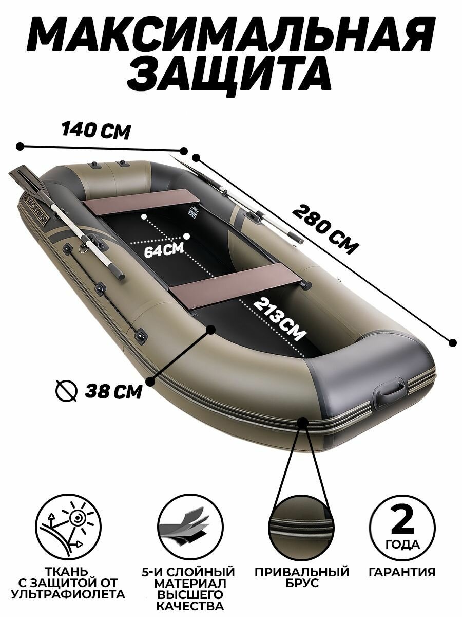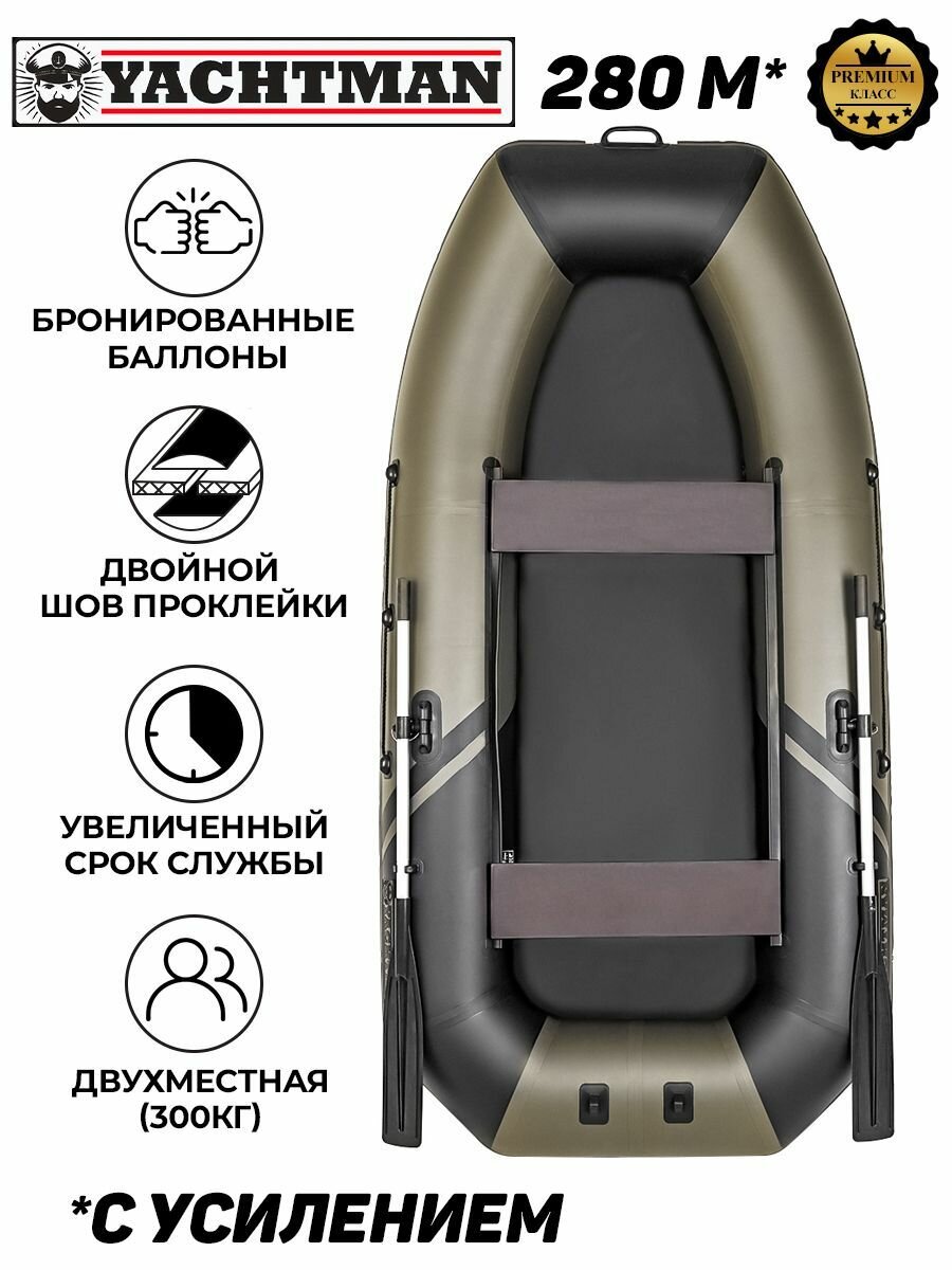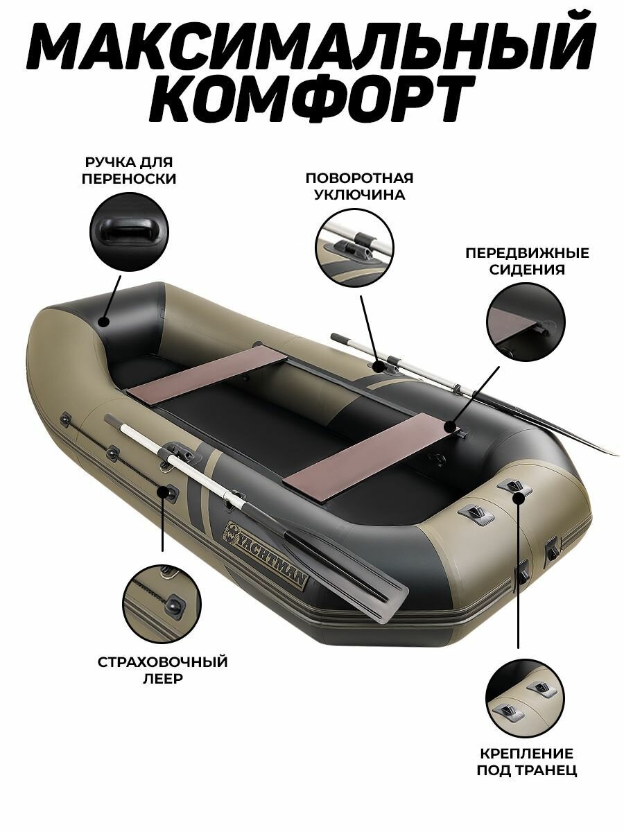 Лодка ПВХ моторно-гребная YACHTMAN 280 М, хаки;черный интересное: