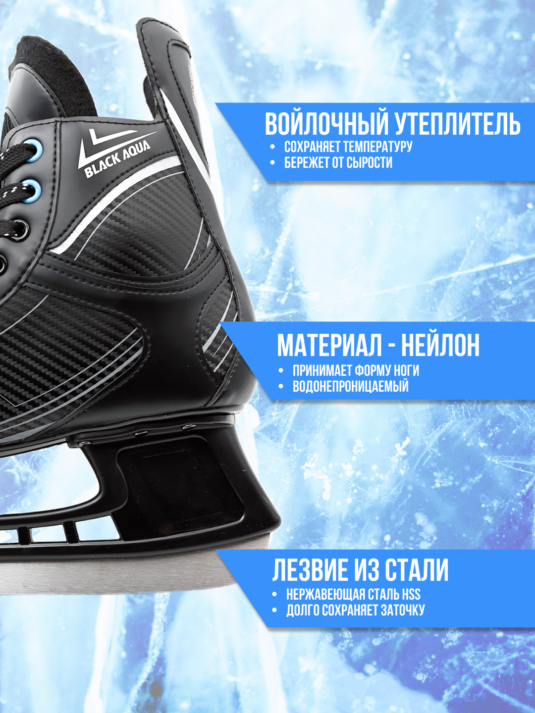Коньки хоккейные BlackAqua HS-210, 45р