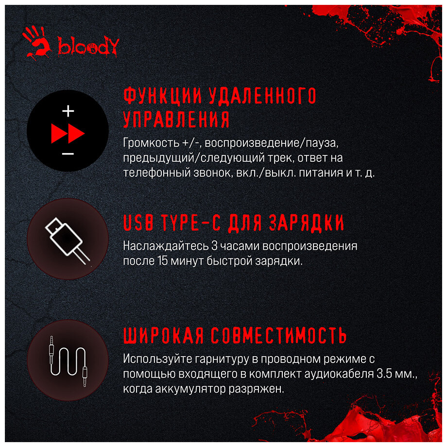 Наушники A4Tech Bloody MH390 беспроводные, с микрофоном, Bluetooth, черный