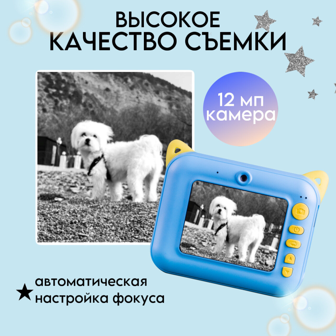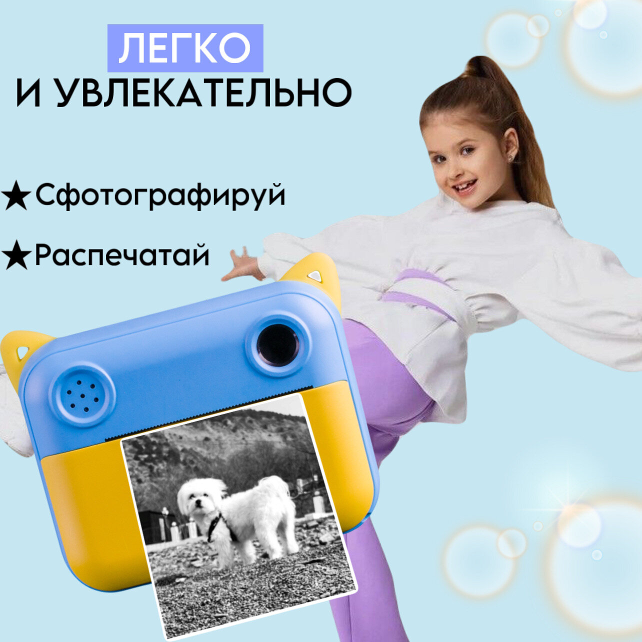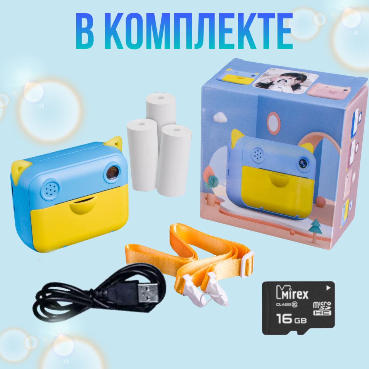 | Комплектация | детский фотоаппарат, зарядный кабель, 3 рулона бумаги, карта памяти на 16 Гб, ремешок на шею |