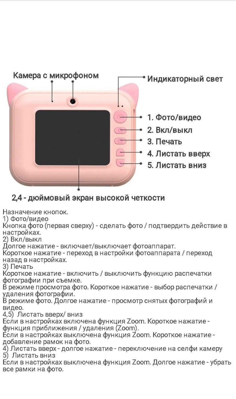 Детский фотоаппарат с моментальной печатью фото розовый интересное: