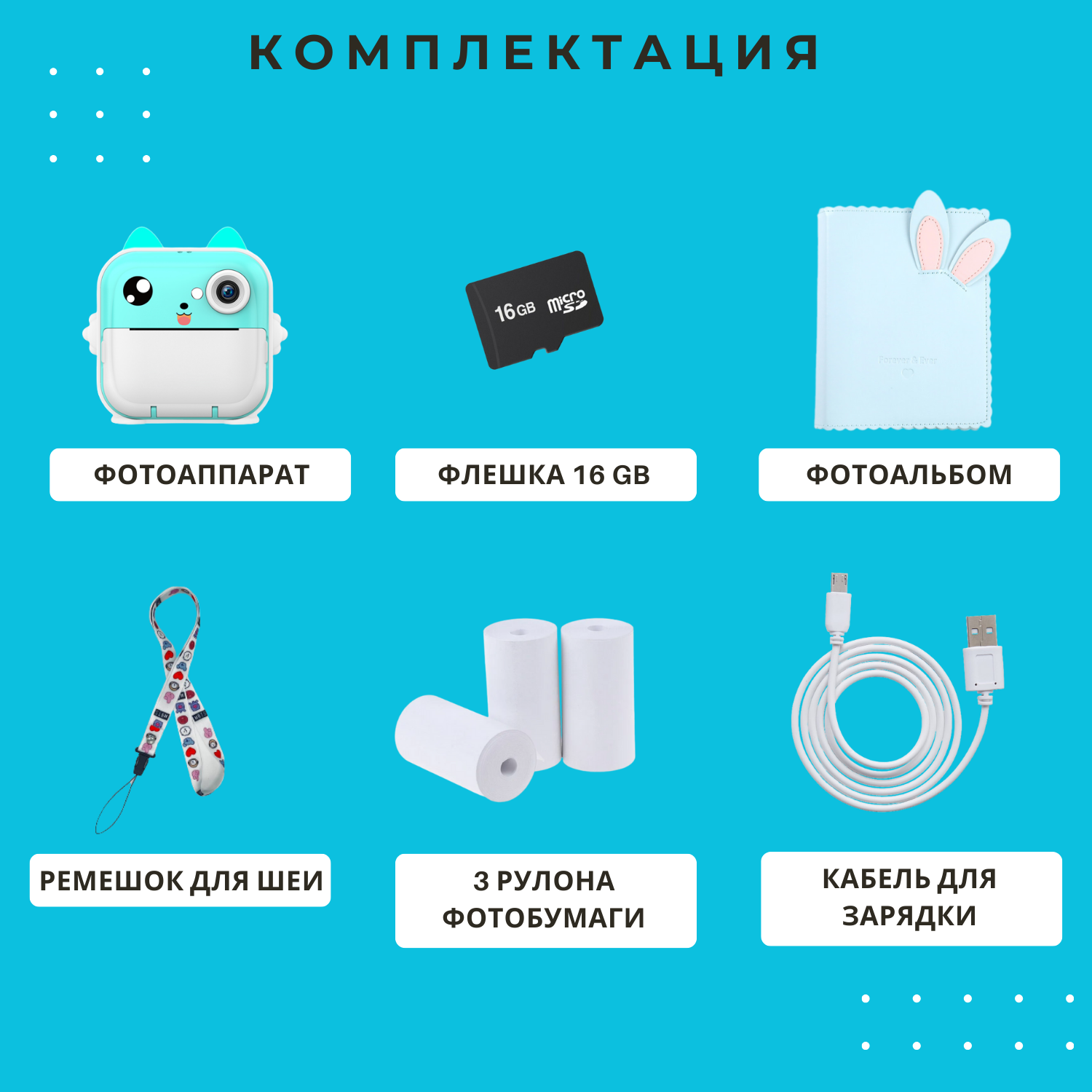 Детский фотоаппарат с моментальной печатью Printcam Kitty Голубой. Фотоальбом в подарок интересное: