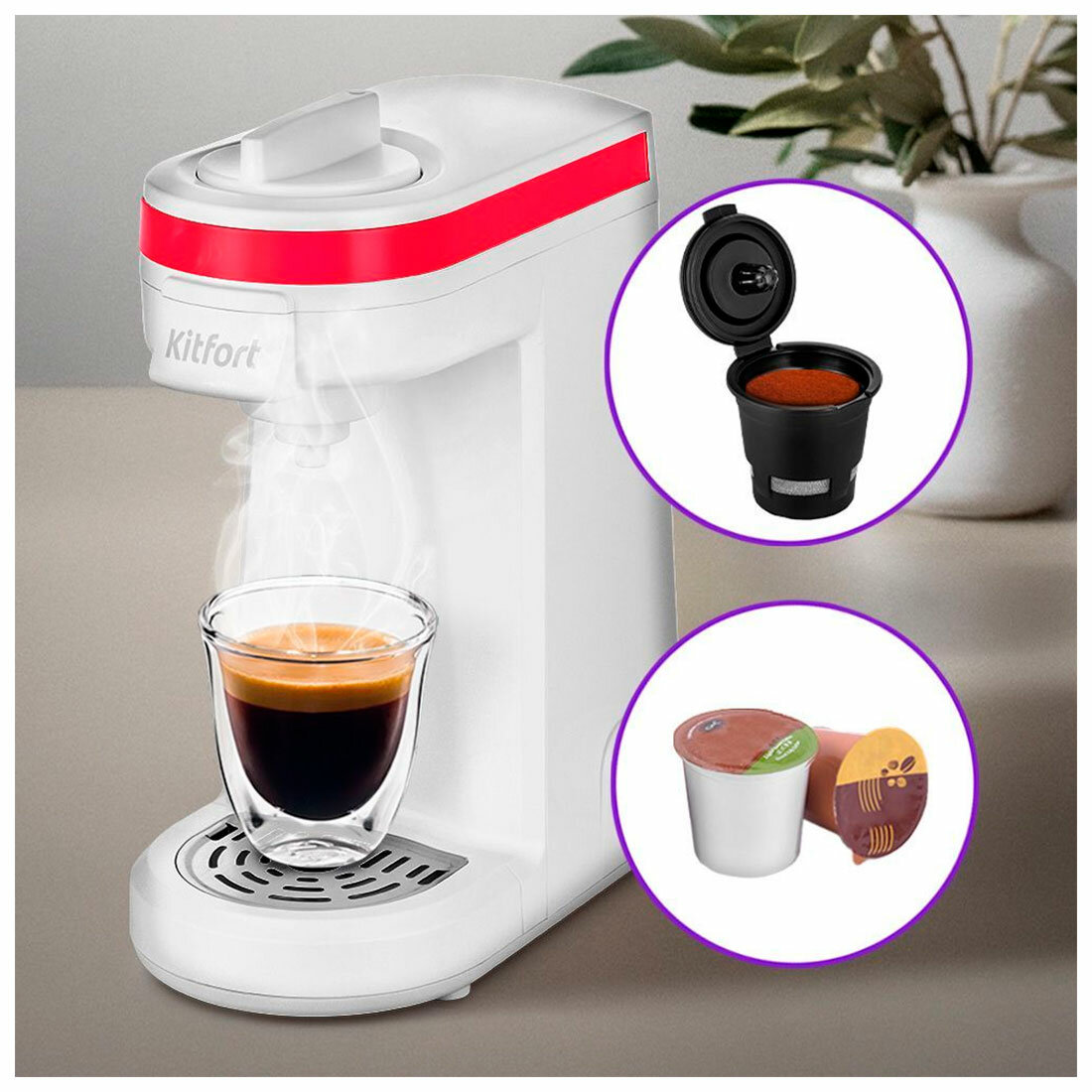 Капсульная кофемашина KITFORT КТ-7122-1 малиновая