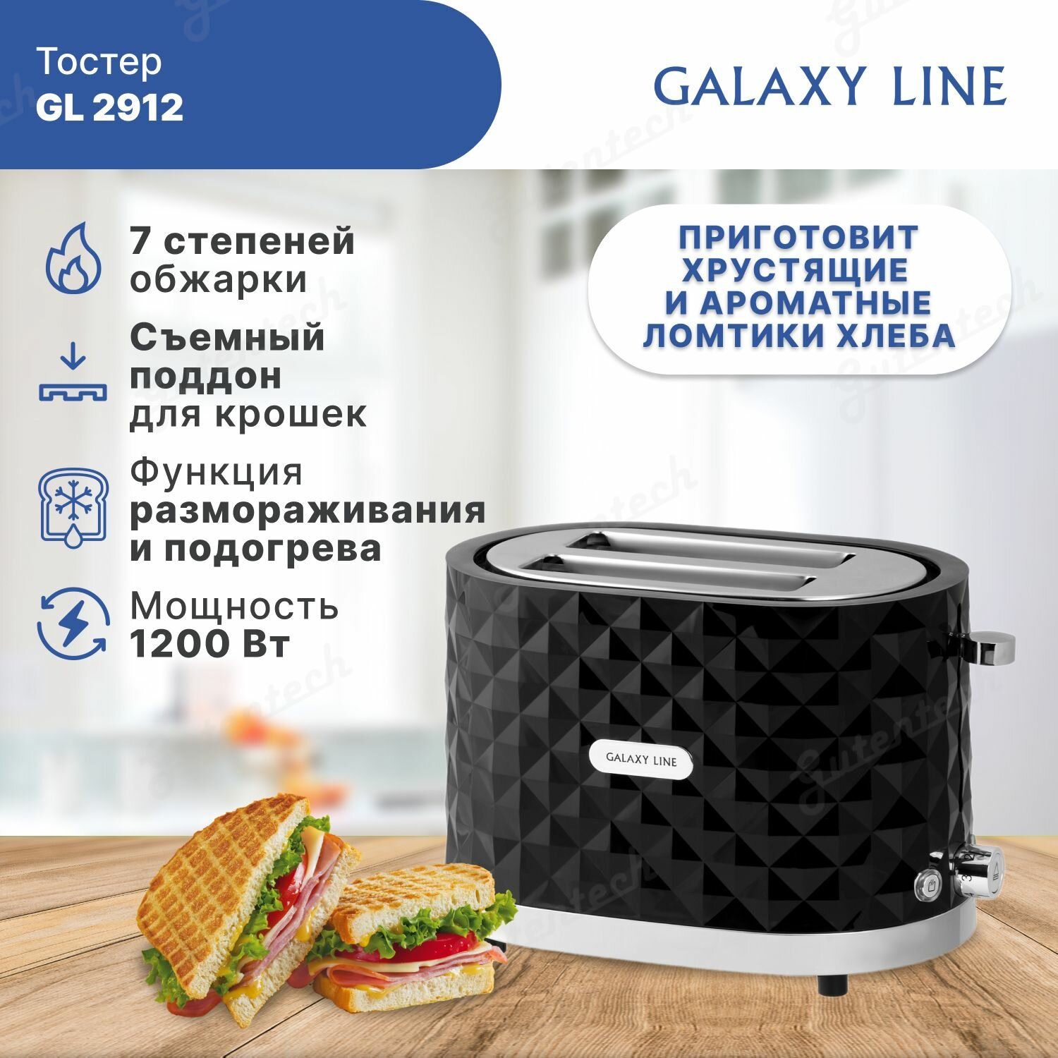Тостер мощность Galaxy LINE GL 2912 черный (1200 Вт, функция автоматического центрирования тоста)