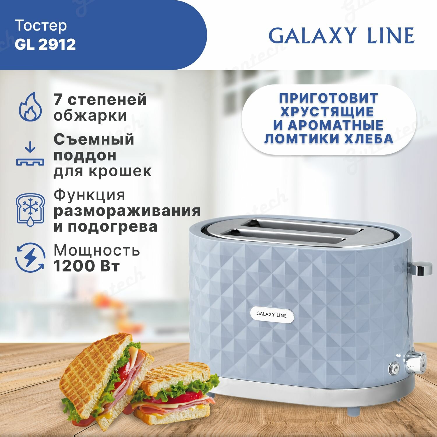 Тостер Galaxy GL 2912, 1200 Вт, 7 режимов прожарки, 2 тоста, серо-голубой
